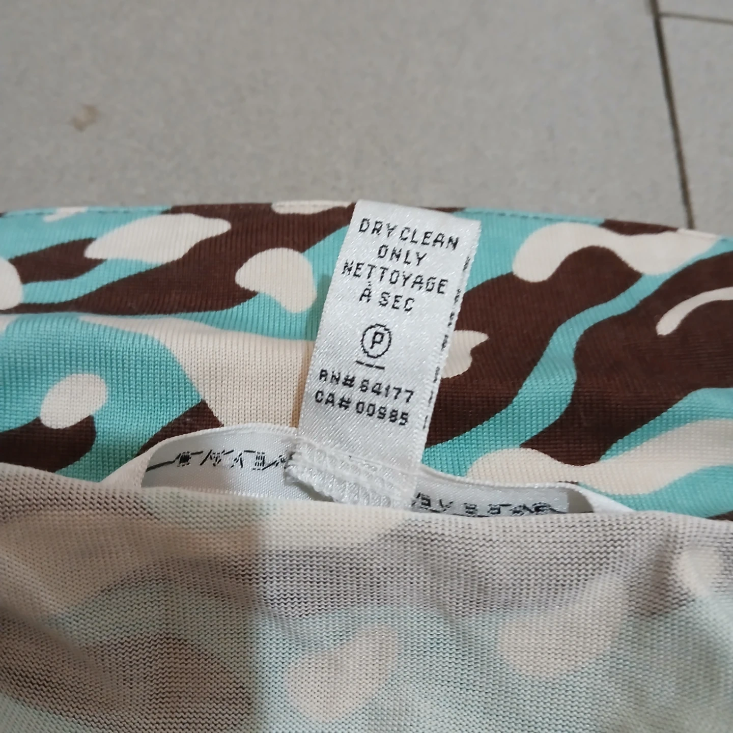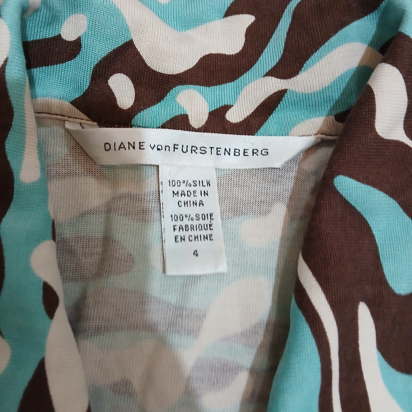 This DIANE von FURSTENBERG dress is made of 100% silk and features a unique camouflage print. It's a size 4 and perfect for adding a stylish touch to your wardrobe. Dry clean only.