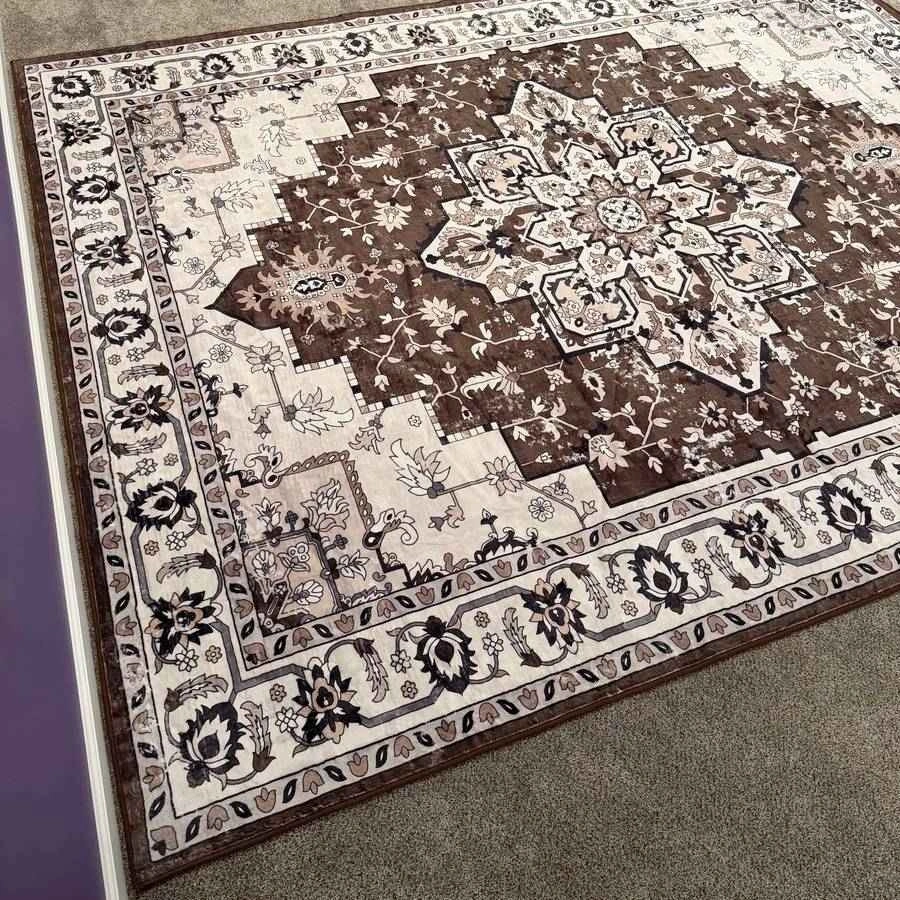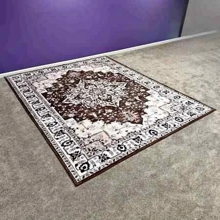 Brand new 9x12 ft area rug with an ornate medallion design in brown and beige. It's machine washable and has a non-slip design. Feel free to message if you have any questions!