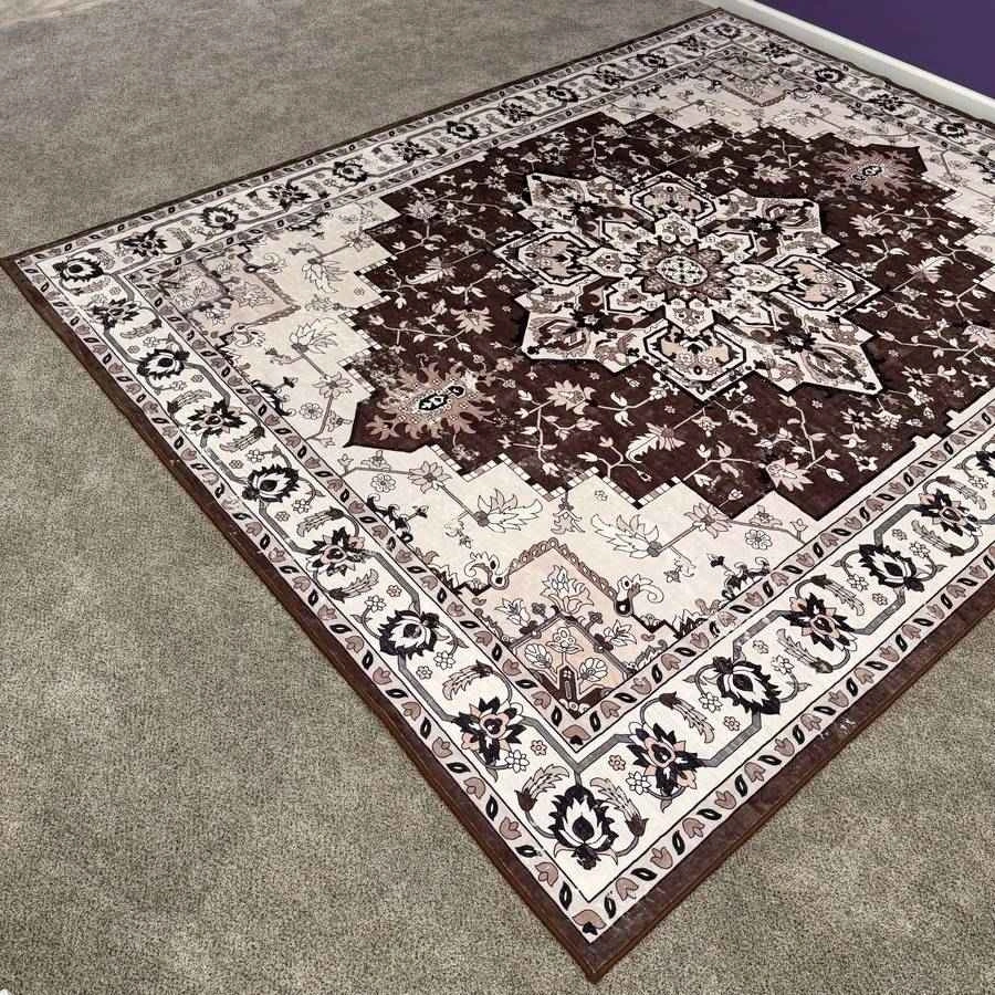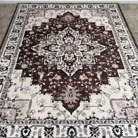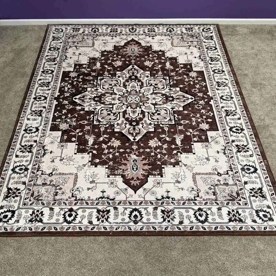 Brand new 9x12 ft area rug with an ornate medallion design in brown and beige. It's machine washable and has a non-slip design. Feel free to message if you have any questions!