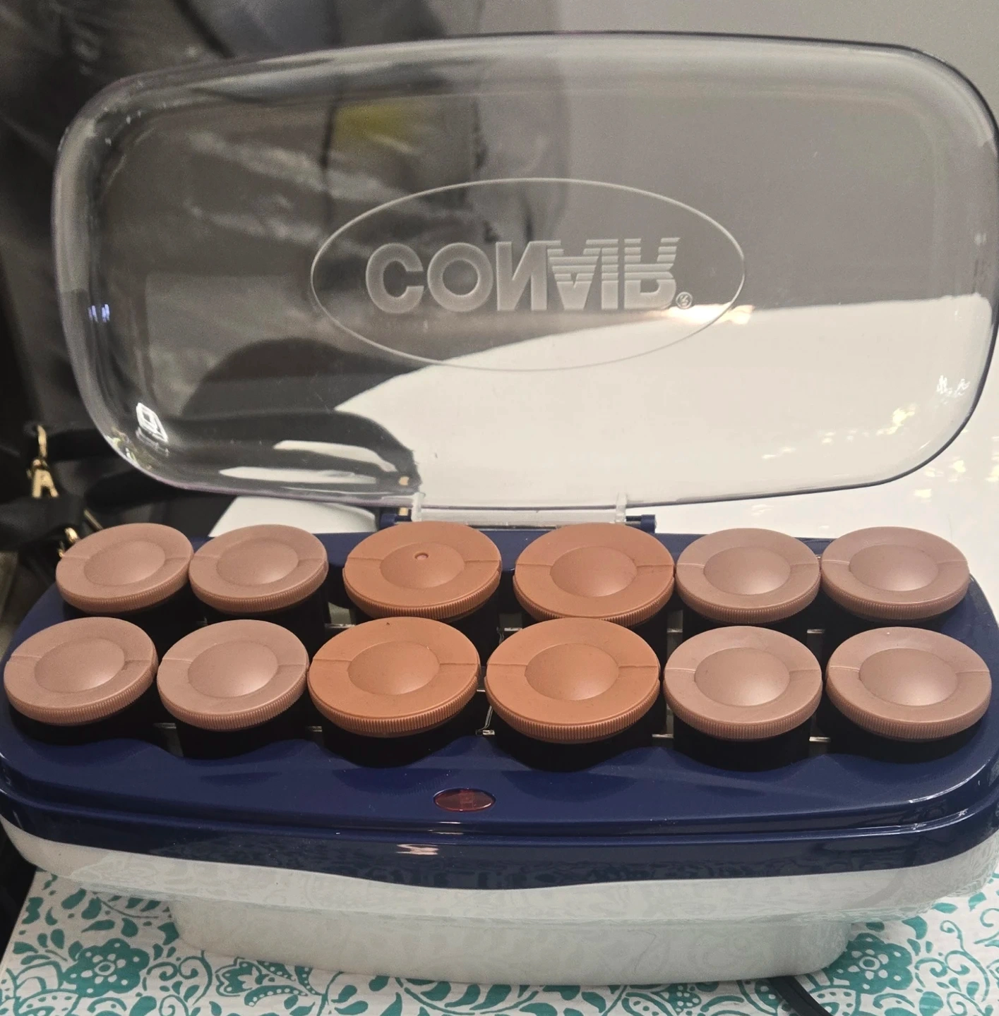 This Conair ceramic roller set includes 12 flocked rollers for volume. It offers rapid heating and velvet flocking for gentle styling. Creates waves and volume. Missing clips used once