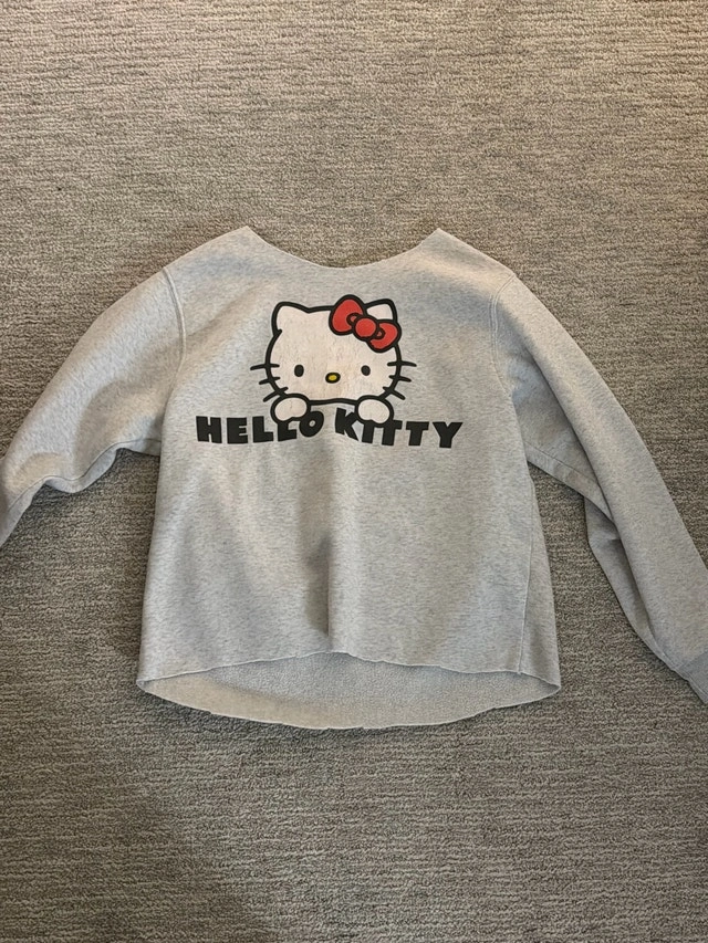 This adorable, used Hello Kitty sweater is perfect for any fan! Featuring the iconic Hello Kitty design, this cozy sweater is ideal for casual wear. Showing some signs of wear, but still in good condition for its age. Grab this cute sweater and add a touch of whimsy to your wardrobe! If the ad is up, it's still available!