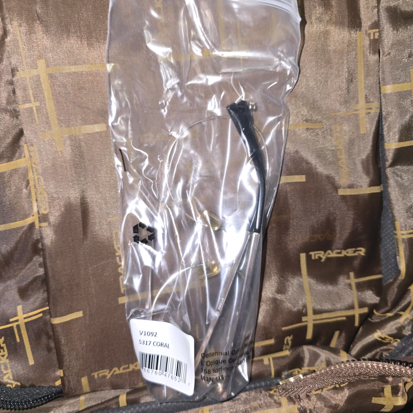 These are Tracker V1092 eyeglass frames in a coral colour. Model number 5317. They are new and come in original packaging. Perfect for someone looking for new eyewear!