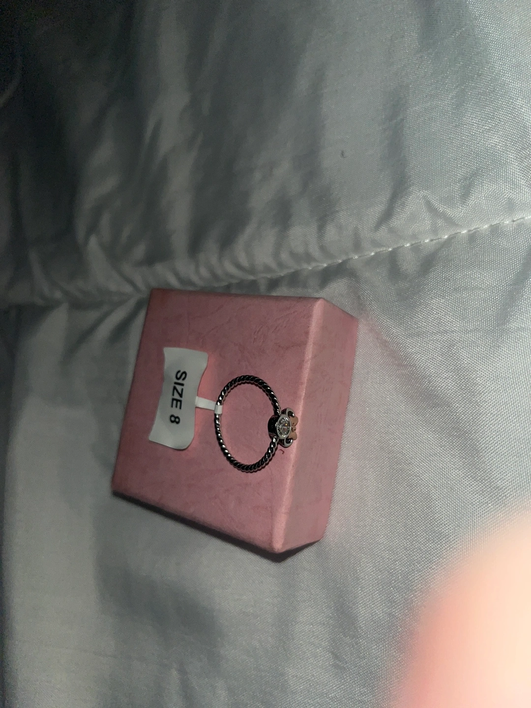 silver ring with a clear stone Minnie Mouse with a rose gold bow . Size 8.