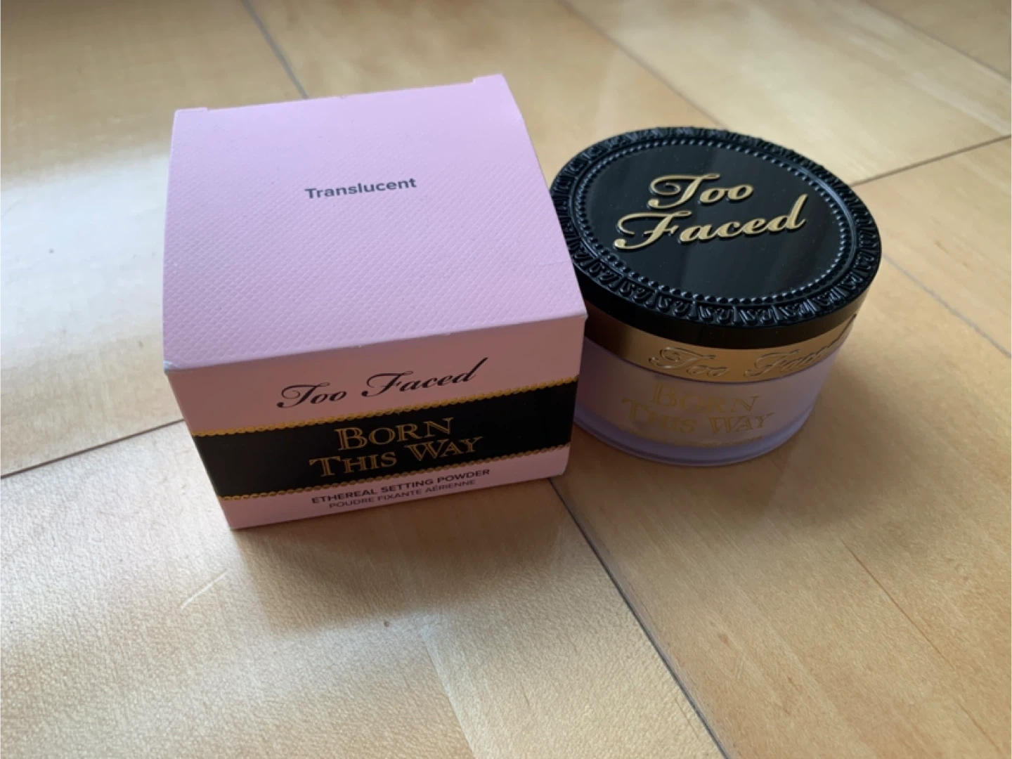 Too Faced Born This Way Ethereal Setting Powder in Translucent shade. This finely-milled powder sets makeup for a smooth, blurred finish. It's lightweight and won't cake.
