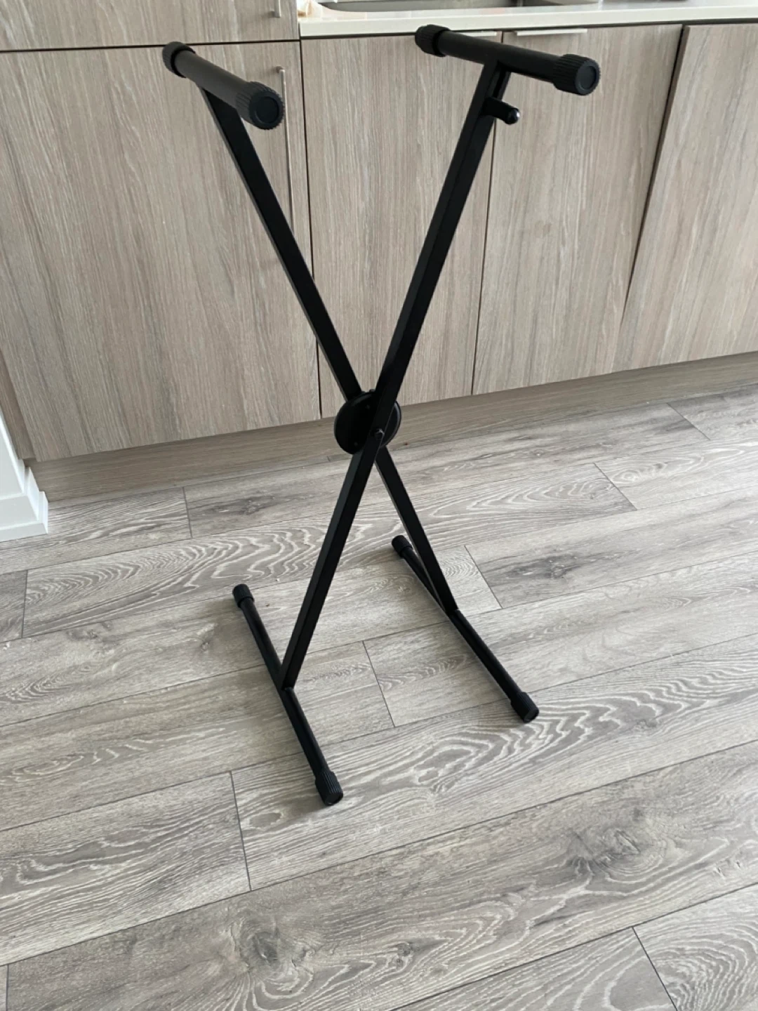 Selling a sturdy and adjustable keyboard stand in black. It's in great condition and ready to support your keyboard or piano. Perfect for musicians of all levels!