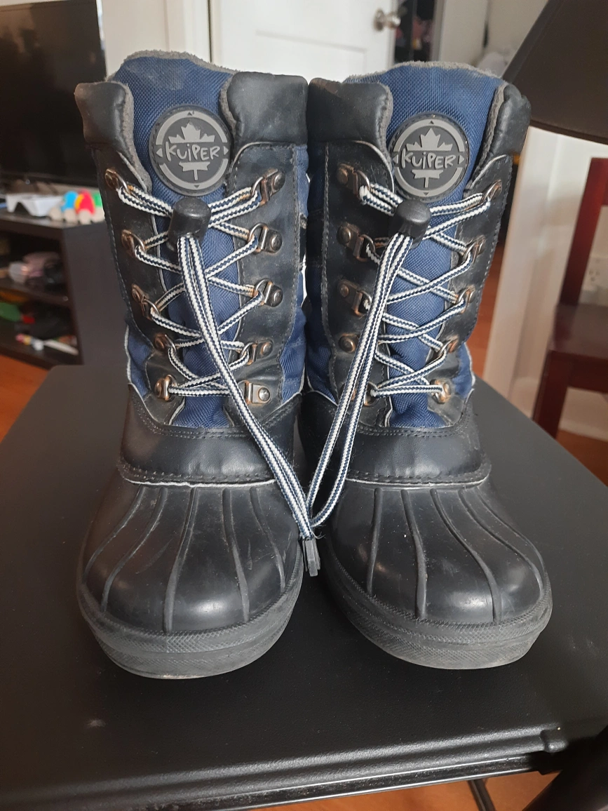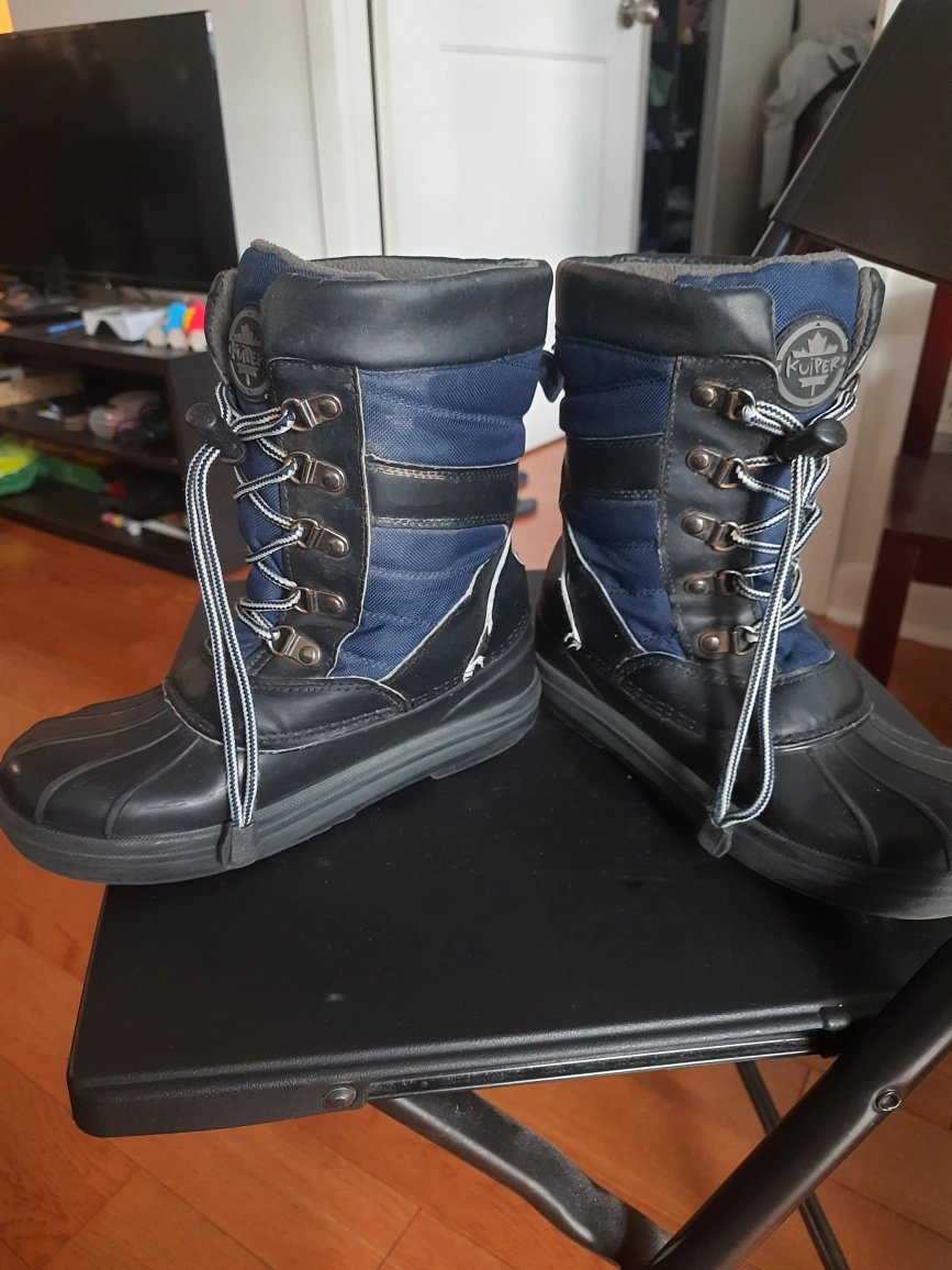 Blue and black winter boots with laces. size 3. Waterproof. In good condition. Selling as it no longer fits my kid.