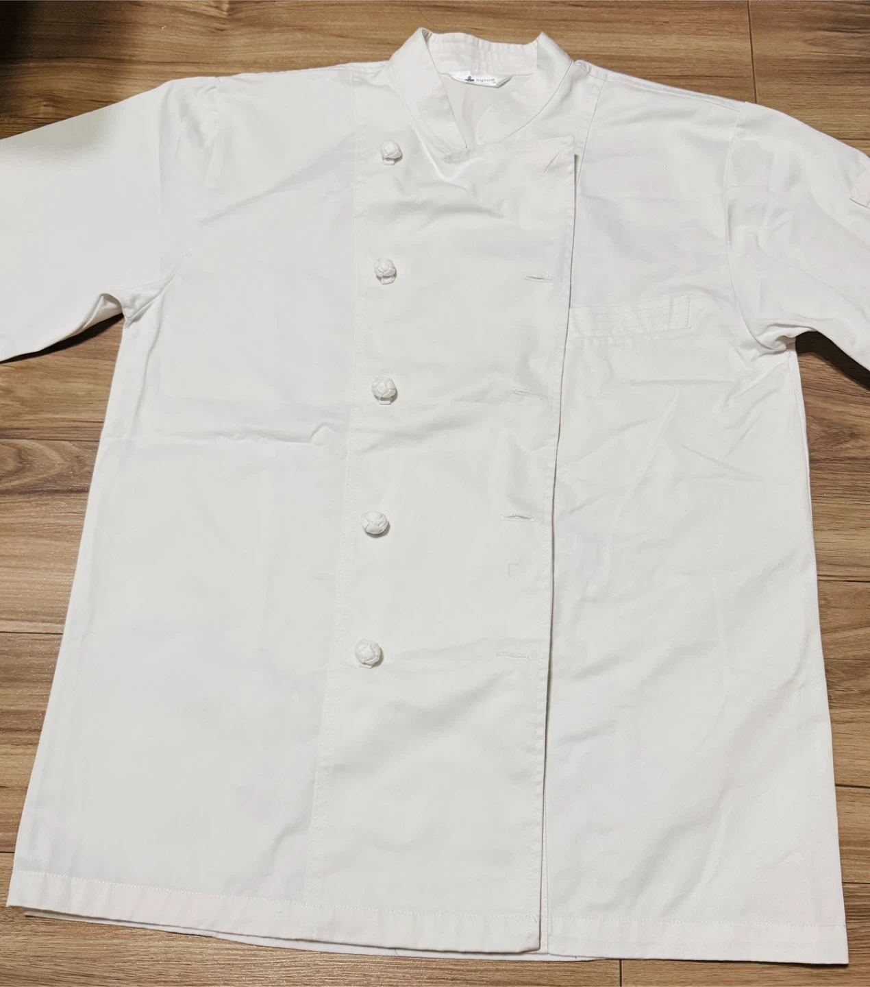 Selling a white chef coat from Inpom in size XL. It's in great condition and ready for a new kitchen!