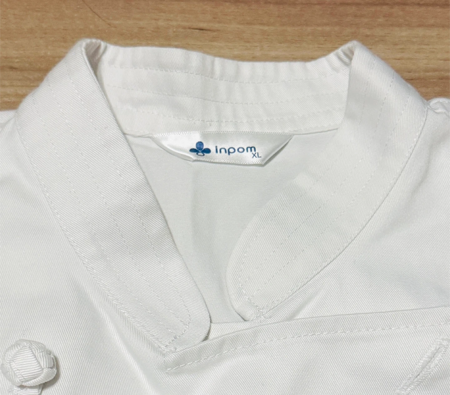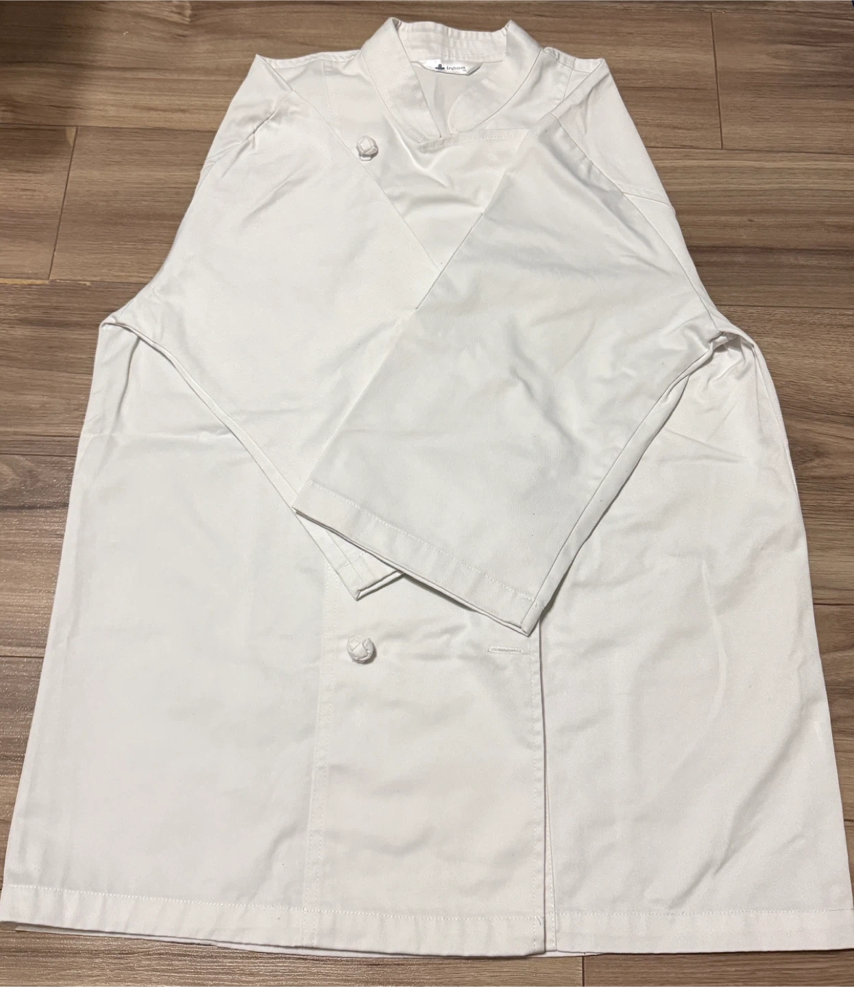 Selling a white chef coat from Inpom in size XL. It's in great condition and ready for a new kitchen!