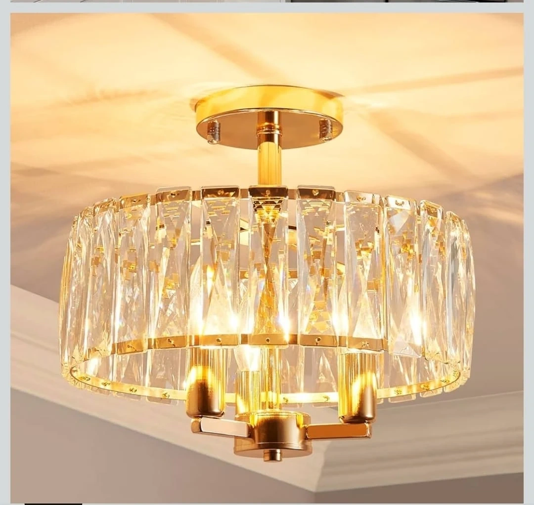 Gold Crystal Semi-Flush Mount Ceiling Light Fixture