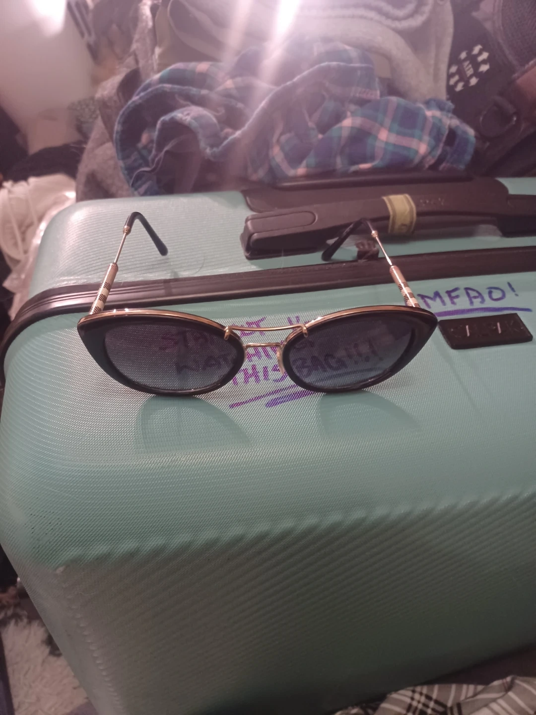 Authentic Burberry sunglasses with a classic black frame and gold accents. These shades feature the iconic Burberry check on the temples. They're perfect for adding a touch of luxury to any outfit!