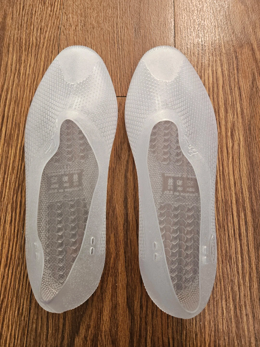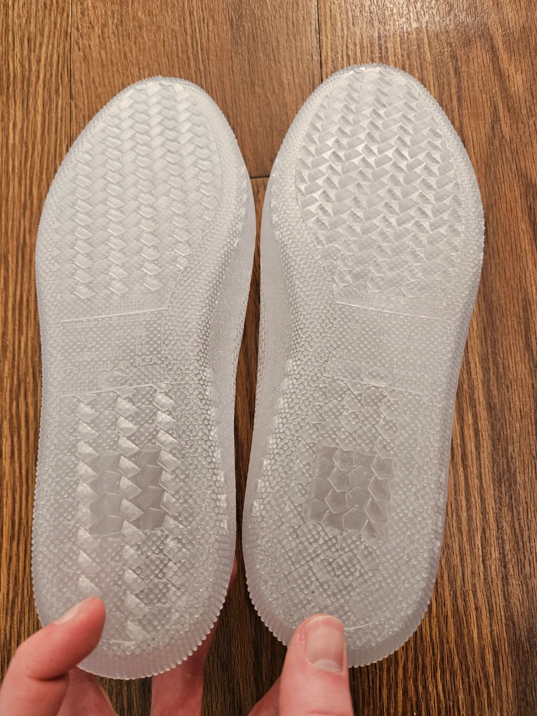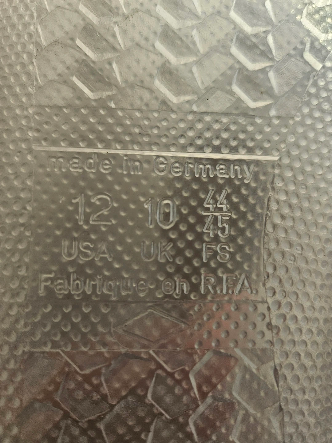 These beach aqua shoe inserts are made in Germany. They are marked with sizes 12 USA, 10 UK, and 45 EU. They feature a textured pattern for grip.