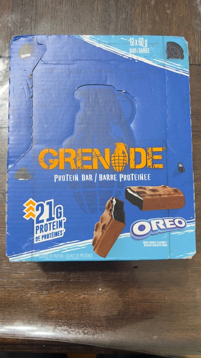 Indulge in a box of Grenade Oreo protein bars, each packed with 21g of protein. These bars are perfect for a post-workout boost or a guilt-free treat. The box is sealed and contains 12 bars ready to be enjoyed.