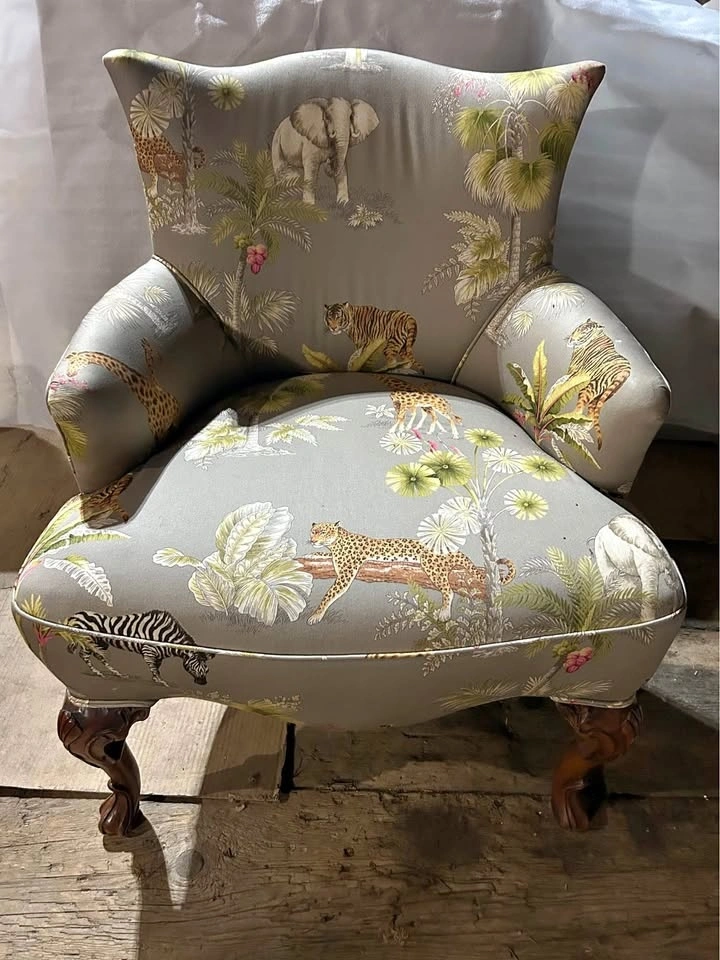 Used Upholstered Wingback chair with Safari Print fabric