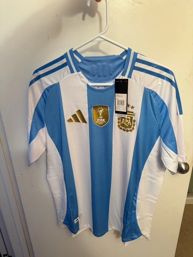 Brand new 2025 Argentina home soccer jersey with tags. Player version, fits smaller (XL but like M/L). Never used, features the 2022 World Champion patch. Asking $60, price is firm. From a bug-free, smoke-free, pet-free home. Pick up only in the South Pembina, Fort Richmond Area.