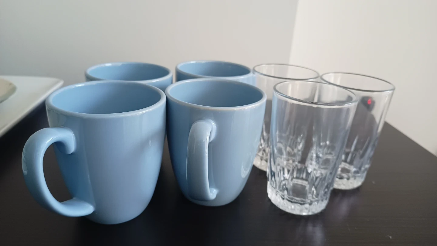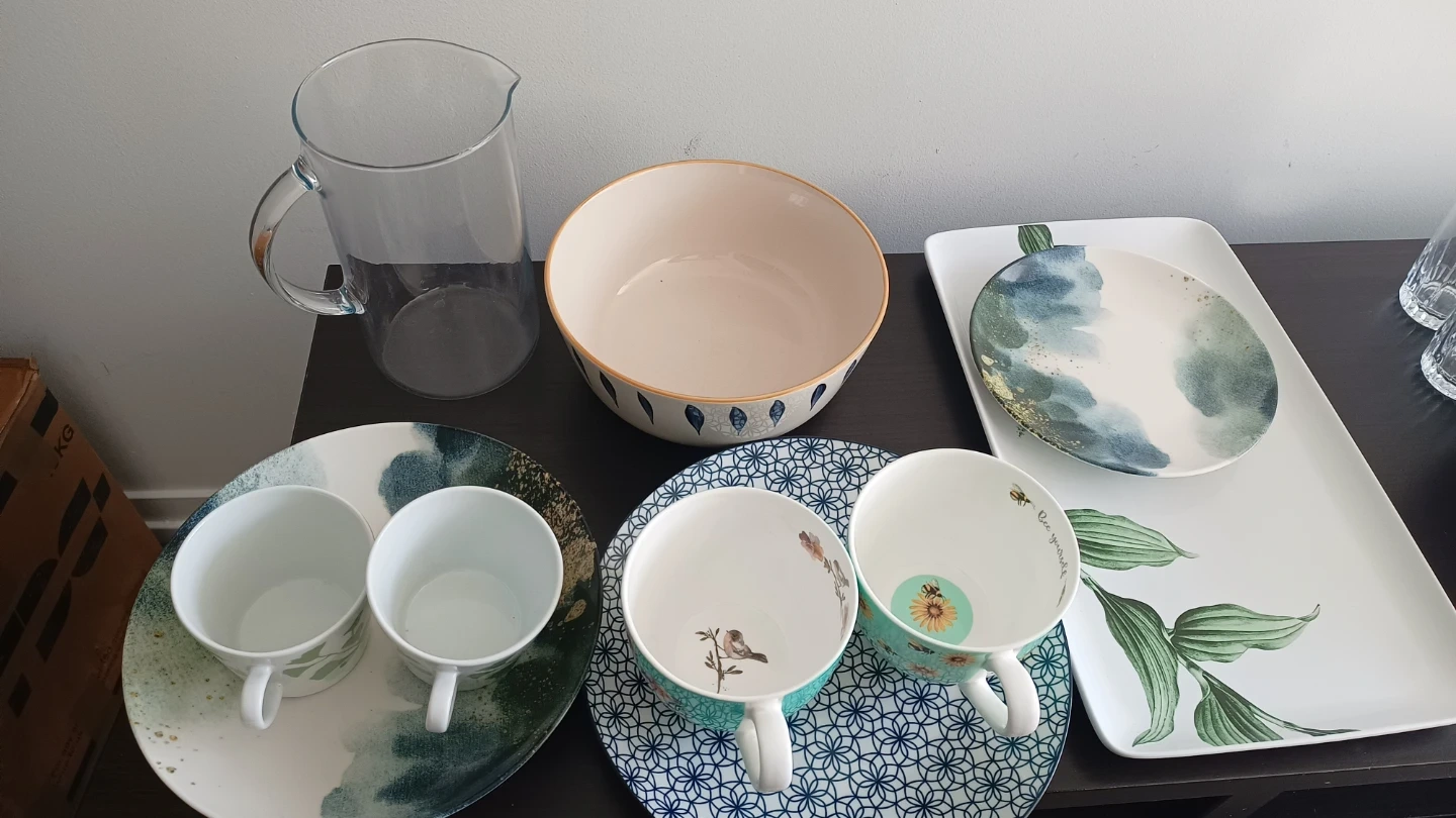 Moving out - Kitchen items serving bowls, mugs and dish drainer