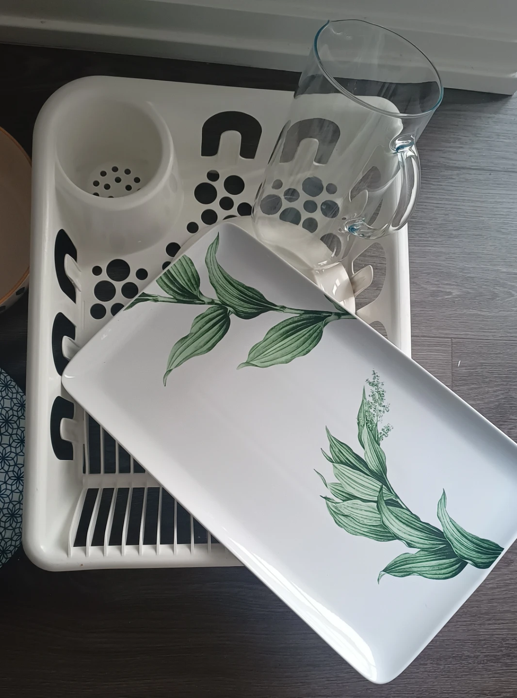 Moving out - Kitchen items serving bowls, mugs and dish drainer