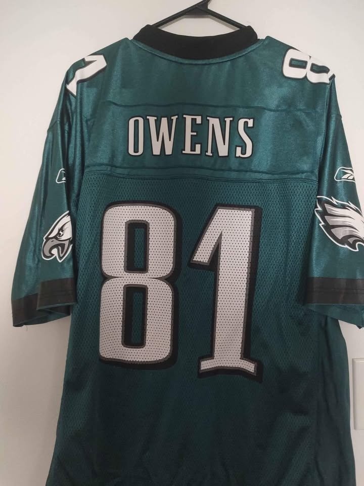 Legendary Hall of Fame Wide Receiver Terrell Owens Jersey, from the year he led the Eagles to the Super Bowl XXXIX (2003-2004 NFL Season)