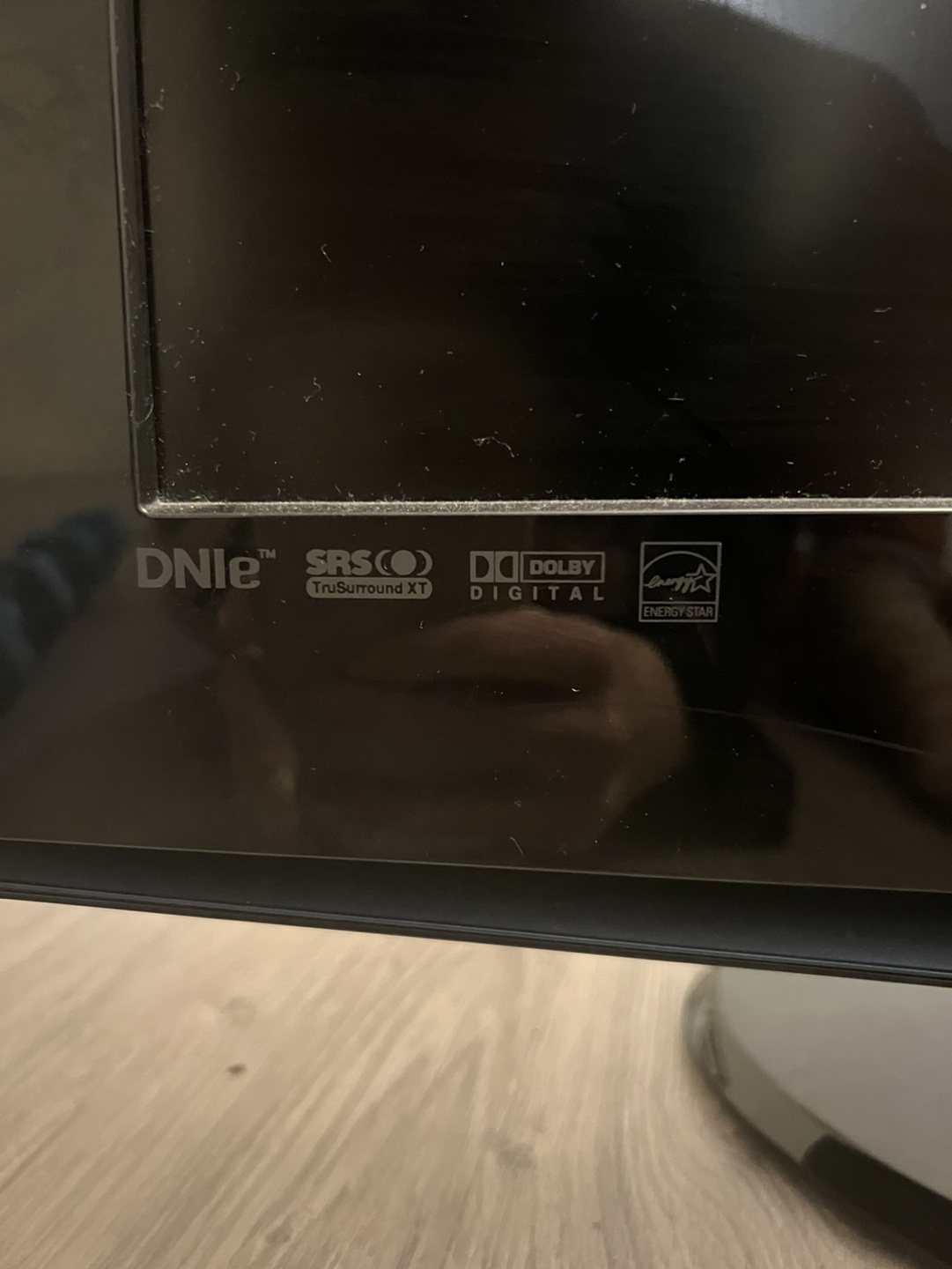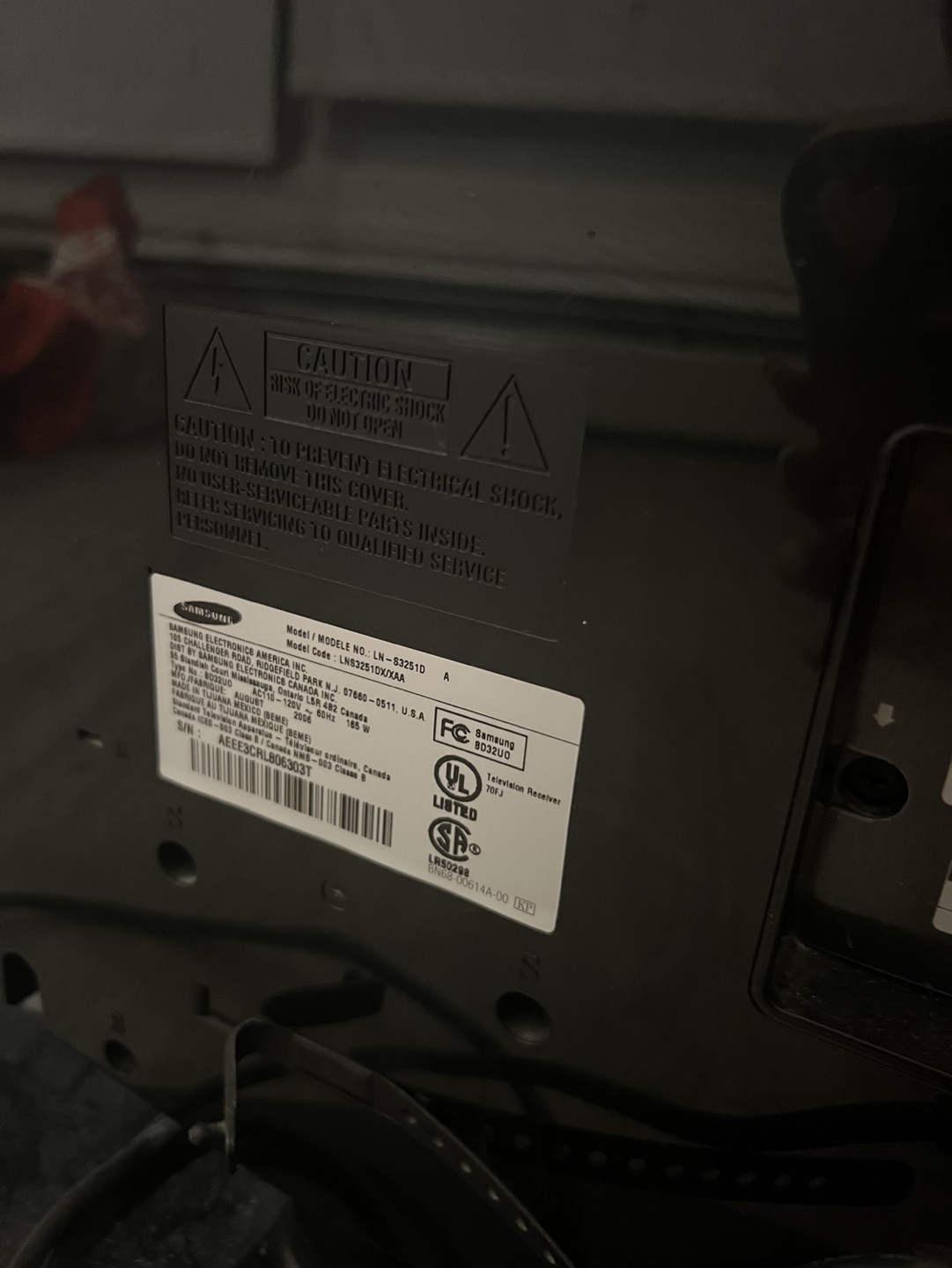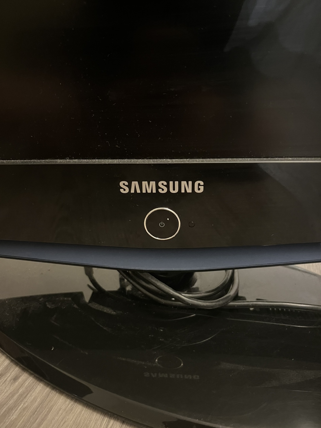 Samsung LCD TV, black in colour. Includes power cord. Features HDMI and DVI-In ports as well as other inputs.