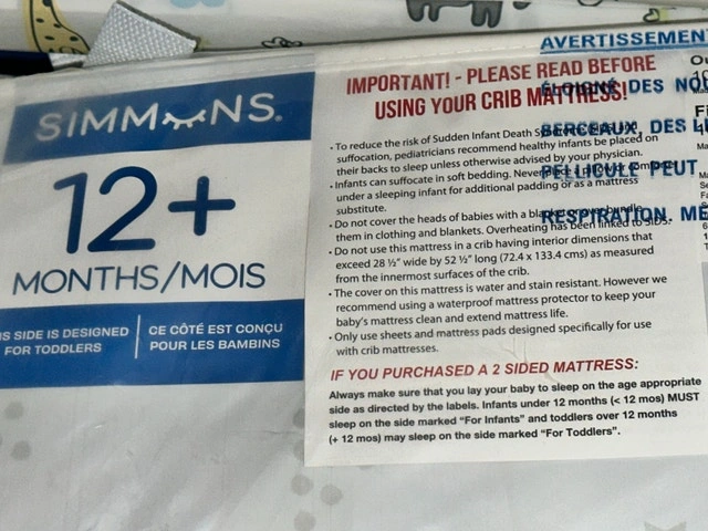 This is a brand new Simmons crib mattress, designed to provide a firm and comfortable sleeping surface for your little one. It's still in its original packaging, ensuring it's clean and ready for use. Designed for infants and toddlers, it features a water-resistant cover and firm support. It's lightweight for easy changing. Let me know if you're interested!