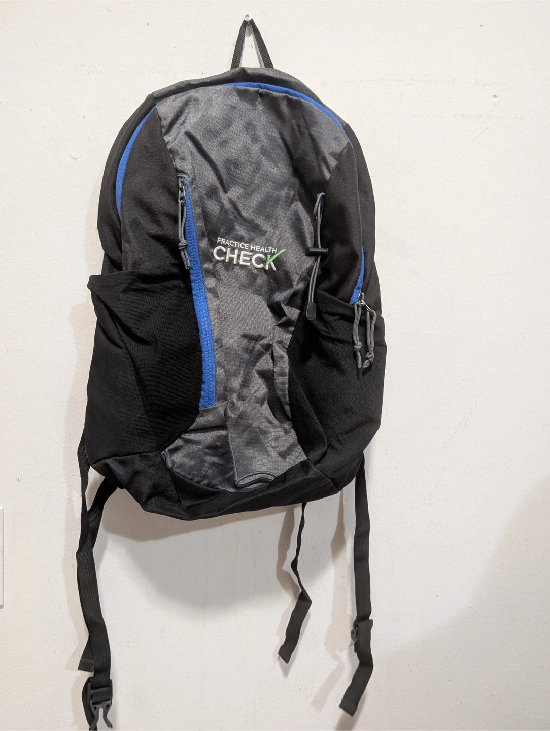 Selling a Practice Health Check backpack in black and grey! It's in great shape and ready for a new home. Perfect for everyday use, school, or travel