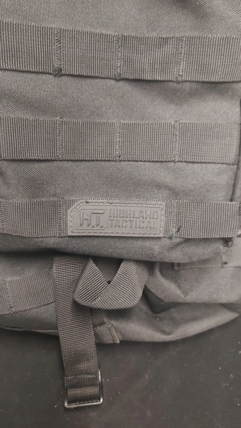 This black Highland Tactical backpack is a versatile pack. It's made of durable nylon and features MOLLE webbing for customization.