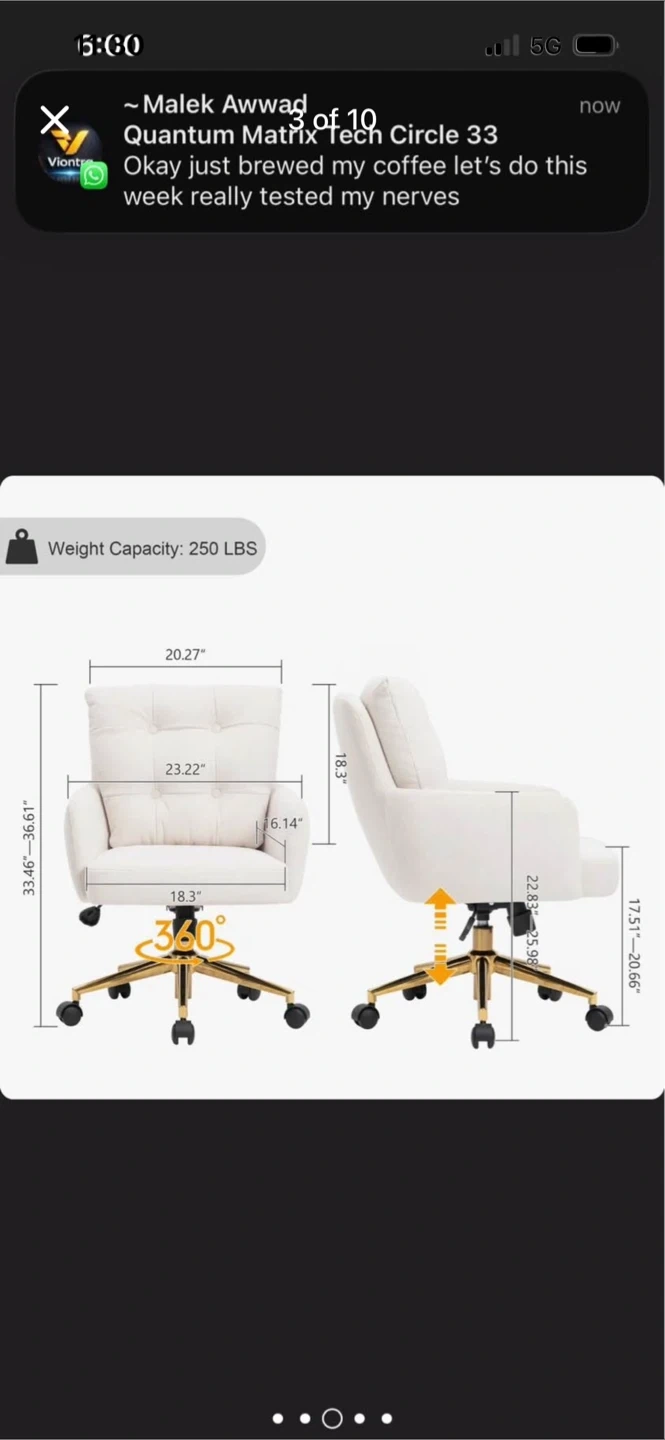 Buy & SellNew Zareon polyester Cream office chairNew Zareon polyester Cream office chair$129Wayfare price $319.99 Cream velvet office chair with gold accents. It's a 360-degree swivel task chair with adjustable height. Weight capacity is 250 lbs.WHERE TO MEETCheck LocationView MapSELLERverifiedSanjeevSandringham Wellington2213 reviews0 chats·0 favorites·10 viewsSEND CHAT TO SELLERHi Sanjeev! I’m interested in your listing.Hi Sanjeev! I’m interested in your listing.Get the Karrot app to chatSign In to chat