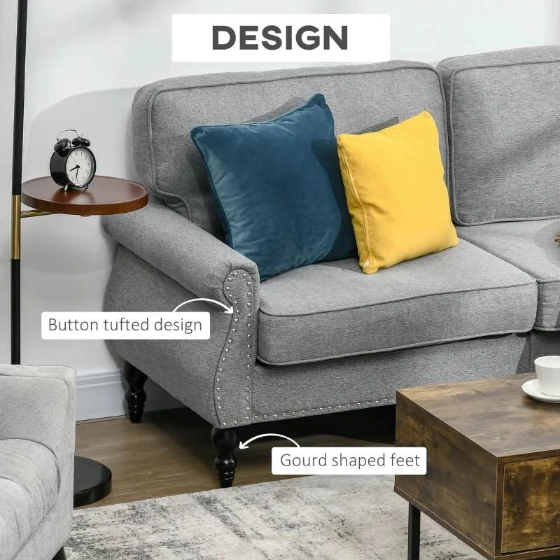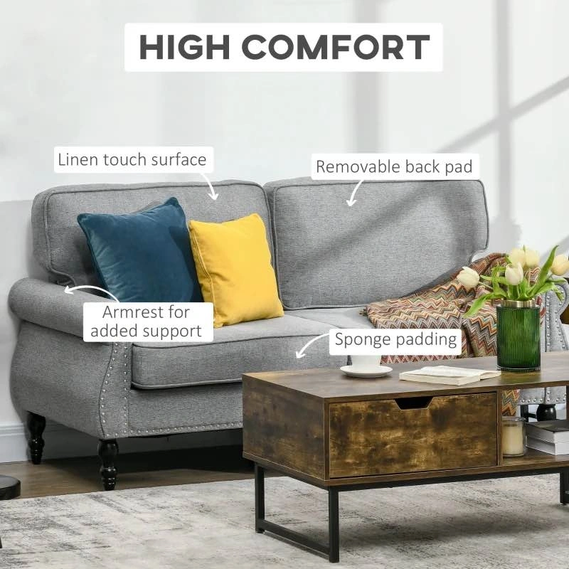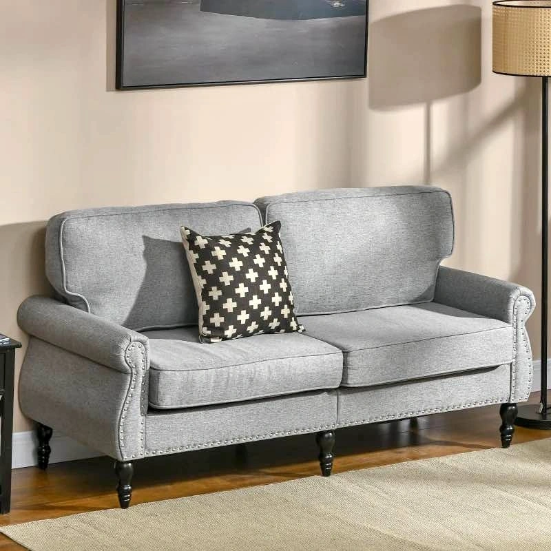 Brand new assembled stylish midback double sofa with sponge padding. This is a 2-seater sofa couch with rubber wood legs in grey.