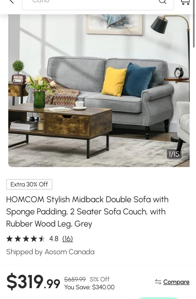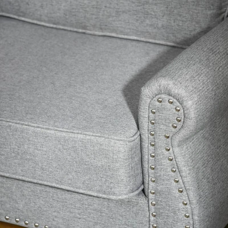 Brand new assembled stylish midback double sofa with sponge padding. This is a 2-seater sofa couch with rubber wood legs in grey.