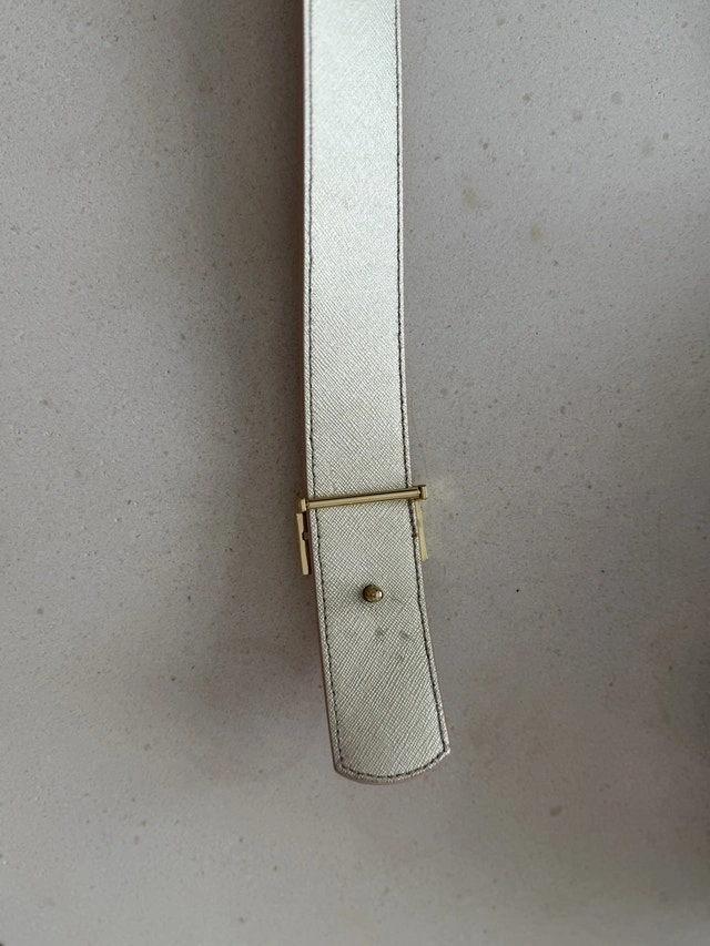 Gorgeous belt featuring a soft rose leather strap with a gold-tone logo buckle, perfect for adding a touch of elegance to any outfit. This belt is in excellent condition. Colour: Soft Rose Pink and Gold. Material: Leather. Style: Fashion Belt. Priced to sell at $22. Fits Small/Medium (pant size 6-10). If the ad is up, the belt is still available. Pick up in Mahogany SE or Quarry Park SE. Cash only.