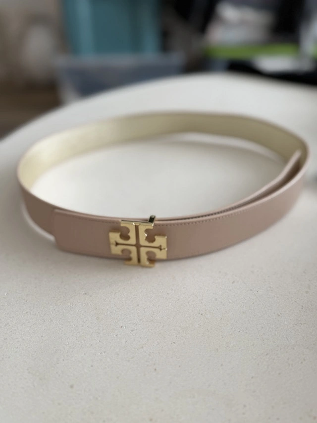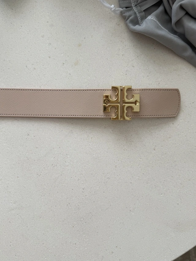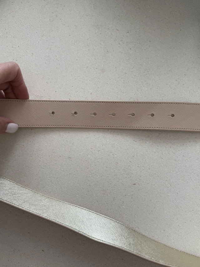 Gorgeous belt featuring a soft rose leather strap with a gold-tone logo buckle, perfect for adding a touch of elegance to any outfit. This belt is in excellent condition. Colour: Soft Rose Pink and Gold. Material: Leather. Style: Fashion Belt. Priced to sell at $22. Fits Small/Medium (pant size 6-10). If the ad is up, the belt is still available. Pick up in Mahogany SE or Quarry Park SE. Cash only.