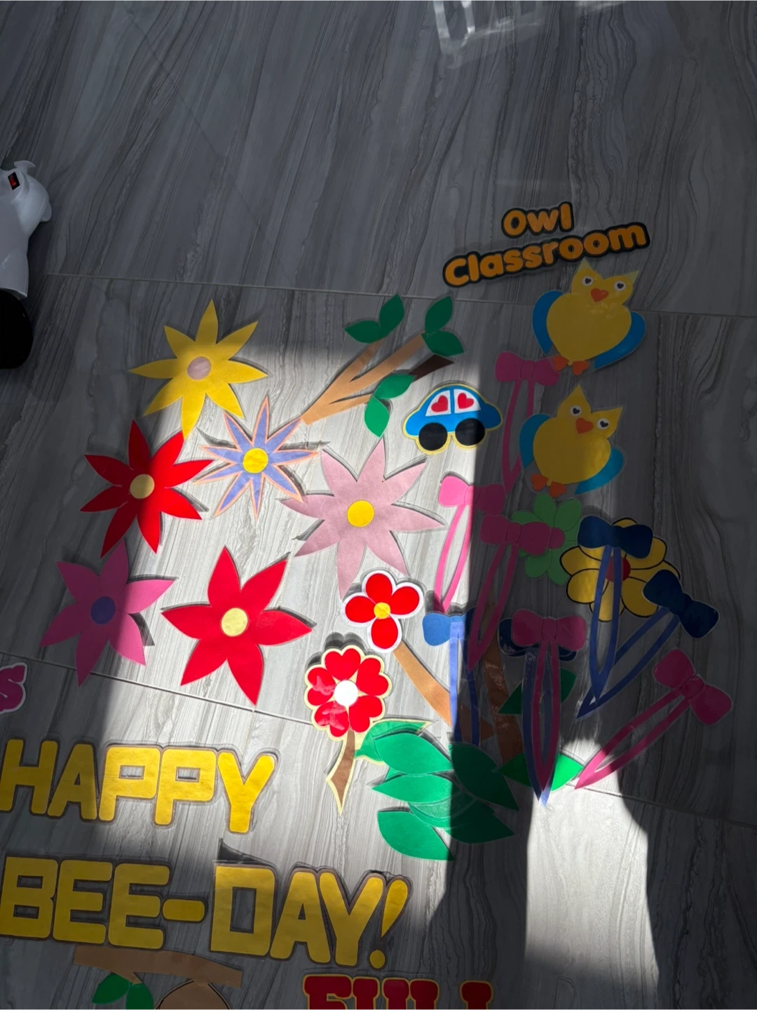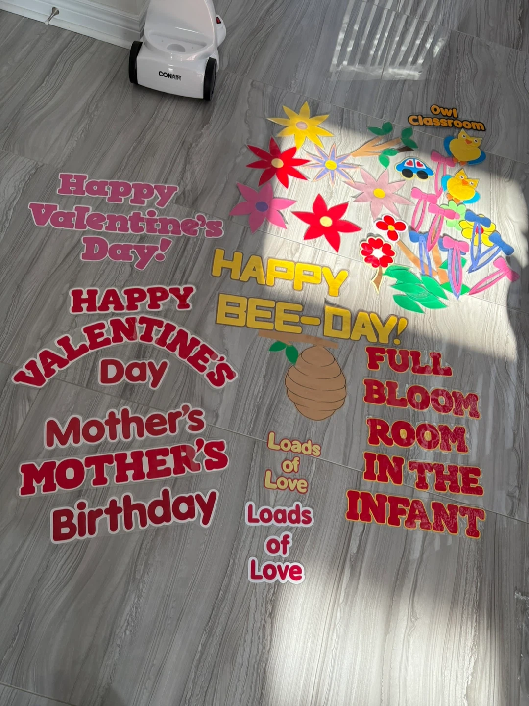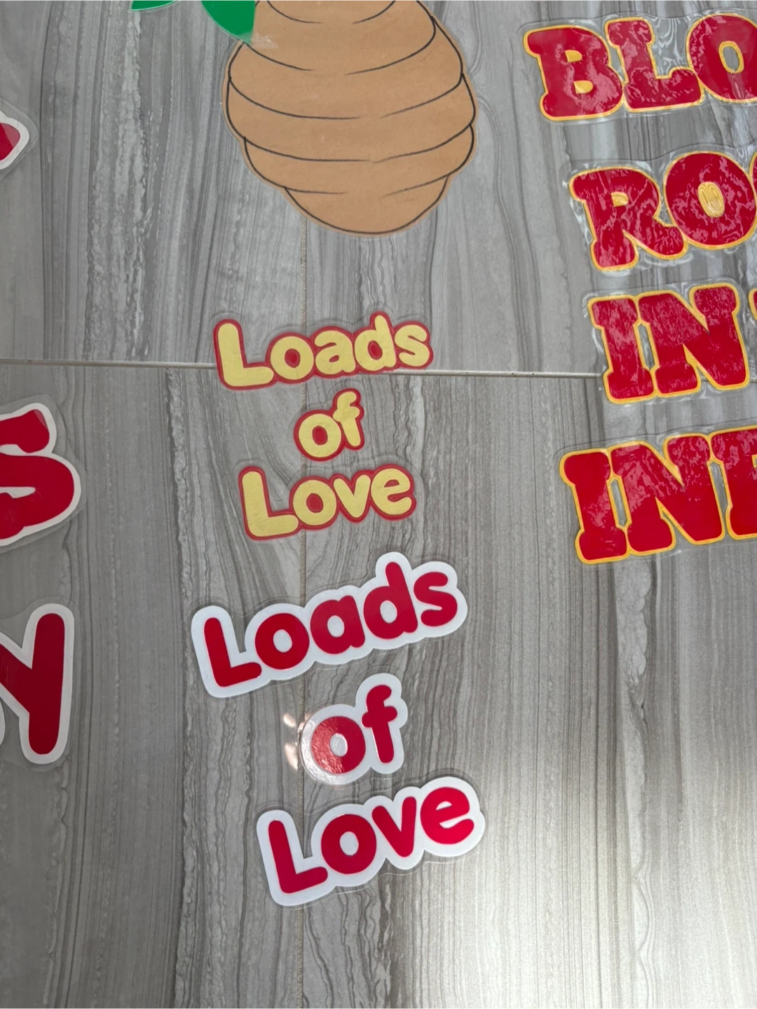 A variety of classroom decoration cutouts including: