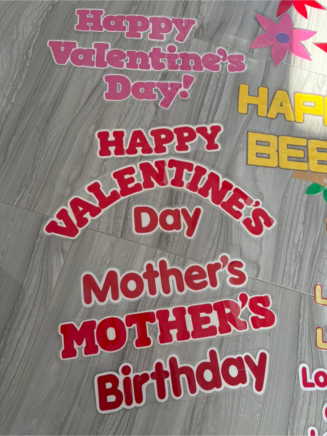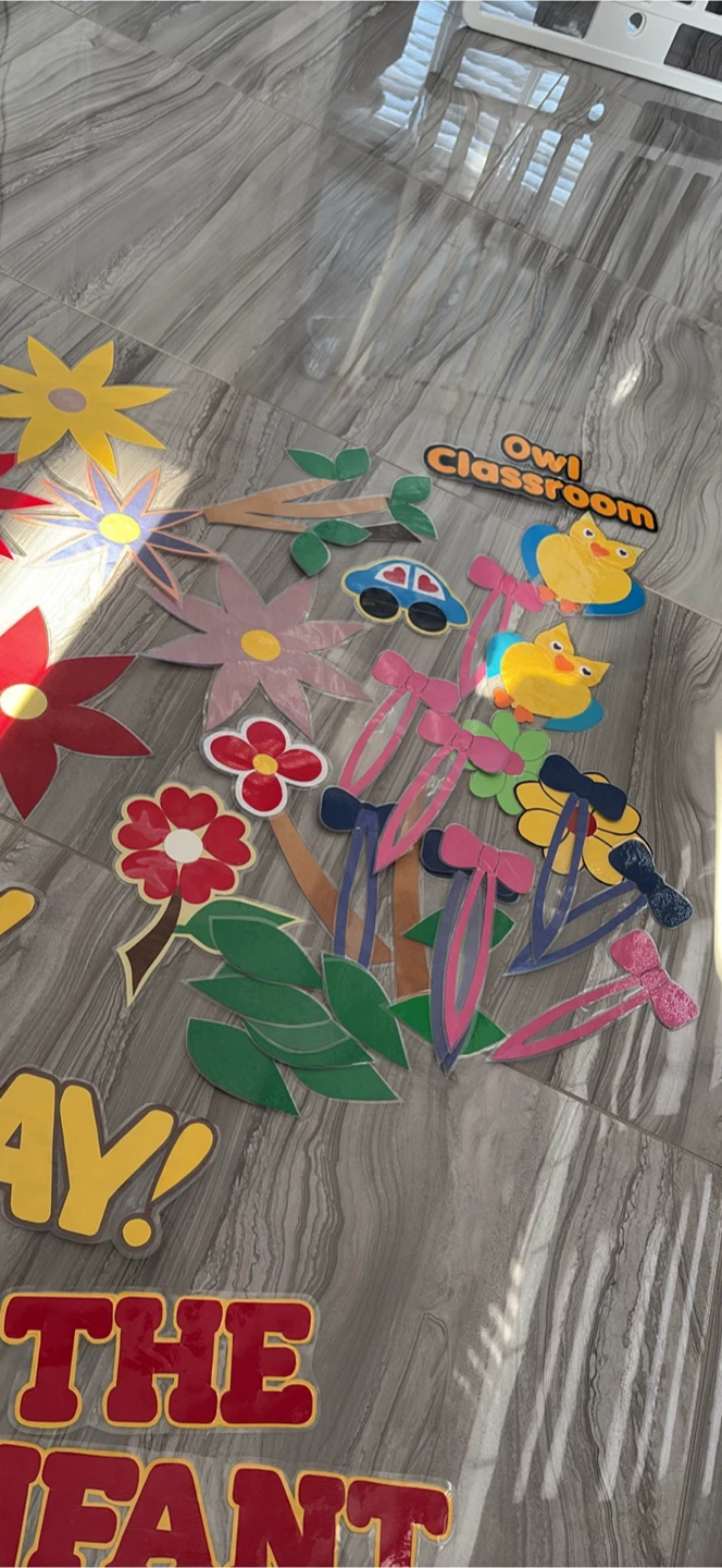 A variety of classroom decoration cutouts including: