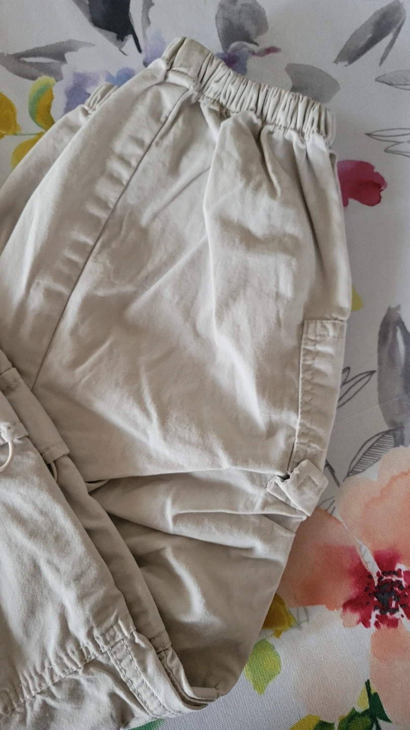 Kids cargo pants in a classic beige colour. These pants have an elastic waistband for comfort. They're great for everyday wear and outdoor activities. Size is medium, fitting 10-12.
