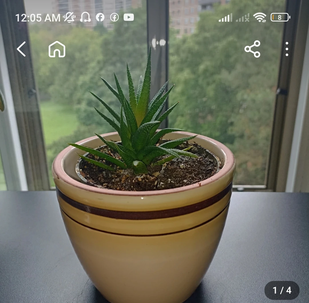 a lovely Haworthia plant in a decorative pot! It's a great addition to any indoor space and super easy to care for. The pot has a nice colour that complements the plant beautifully. Ready to go to a new home!