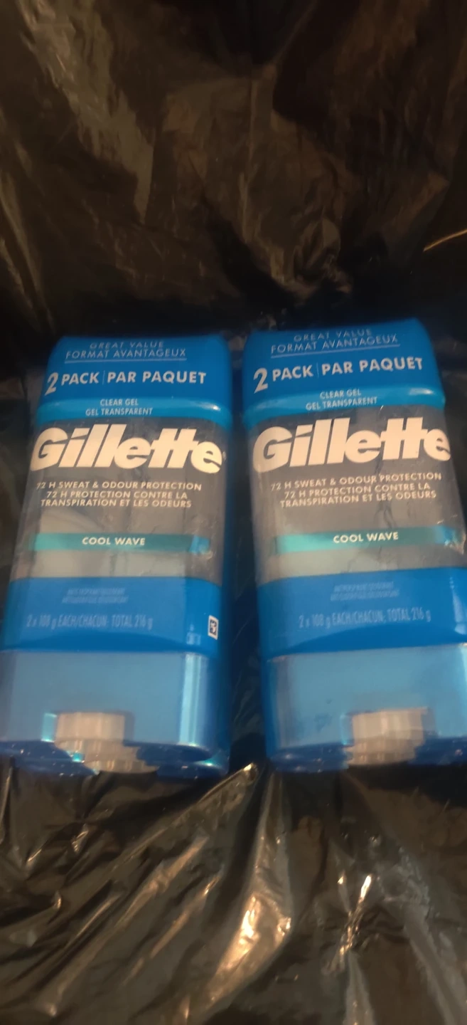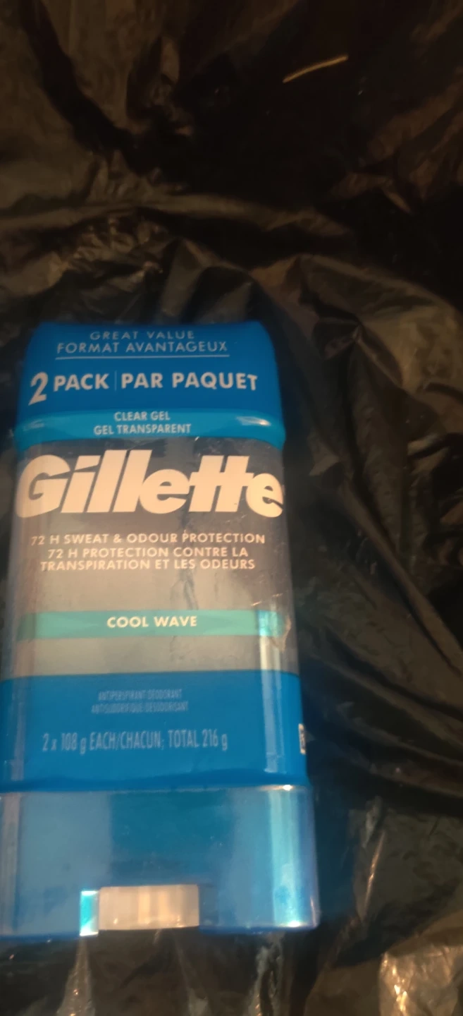 This is 2 packs of Gillette Cool Wave clear gel antiperspirant deodorant. They provides 72-hour sweat and odour protection. Each stick is 108g, for a total of 216g.4 sticks total