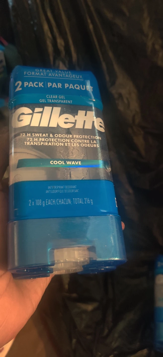This is 2 packs of Gillette Cool Wave clear gel antiperspirant deodorant. They provides 72-hour sweat and odour protection. Each stick is 108g, for a total of 216g.4 sticks total