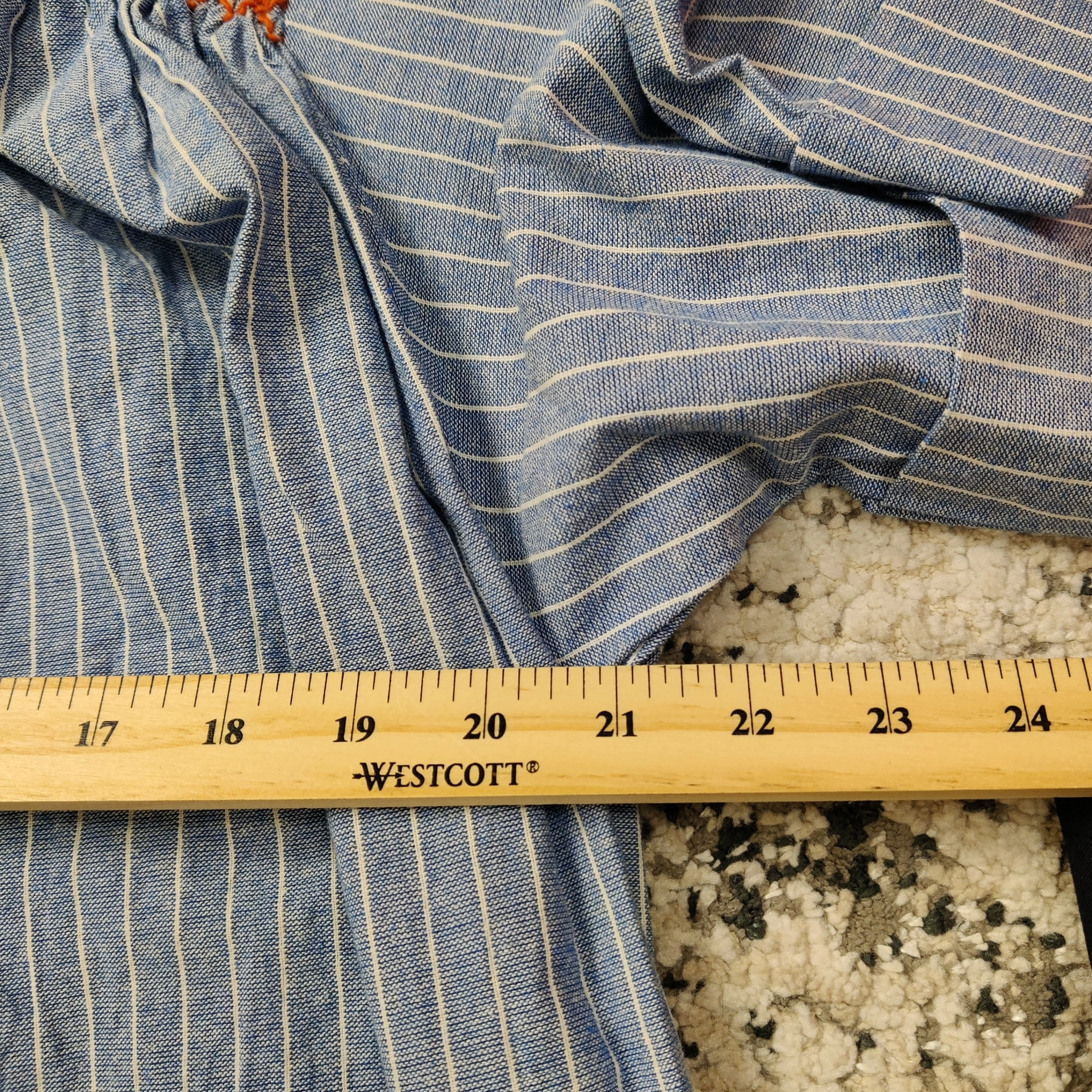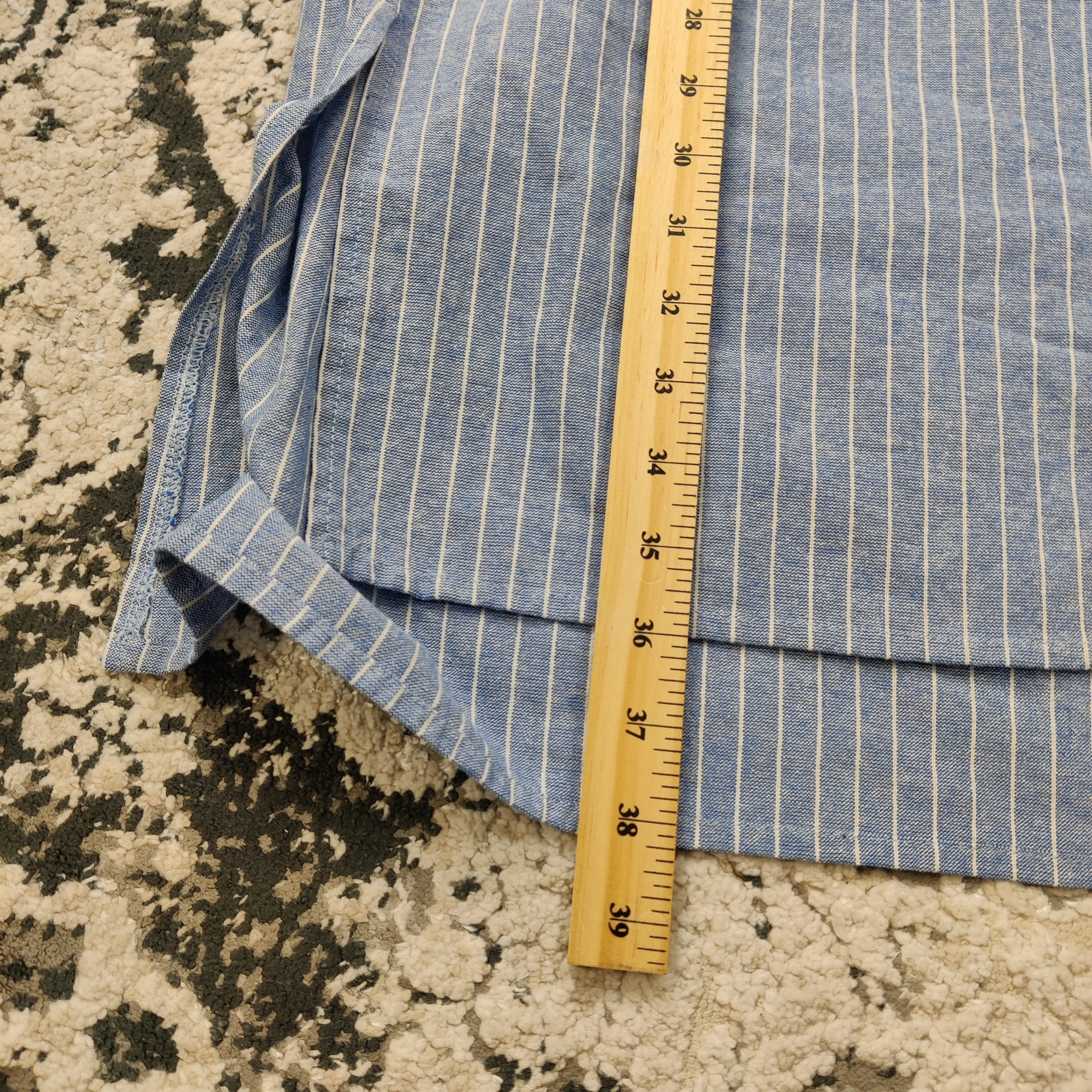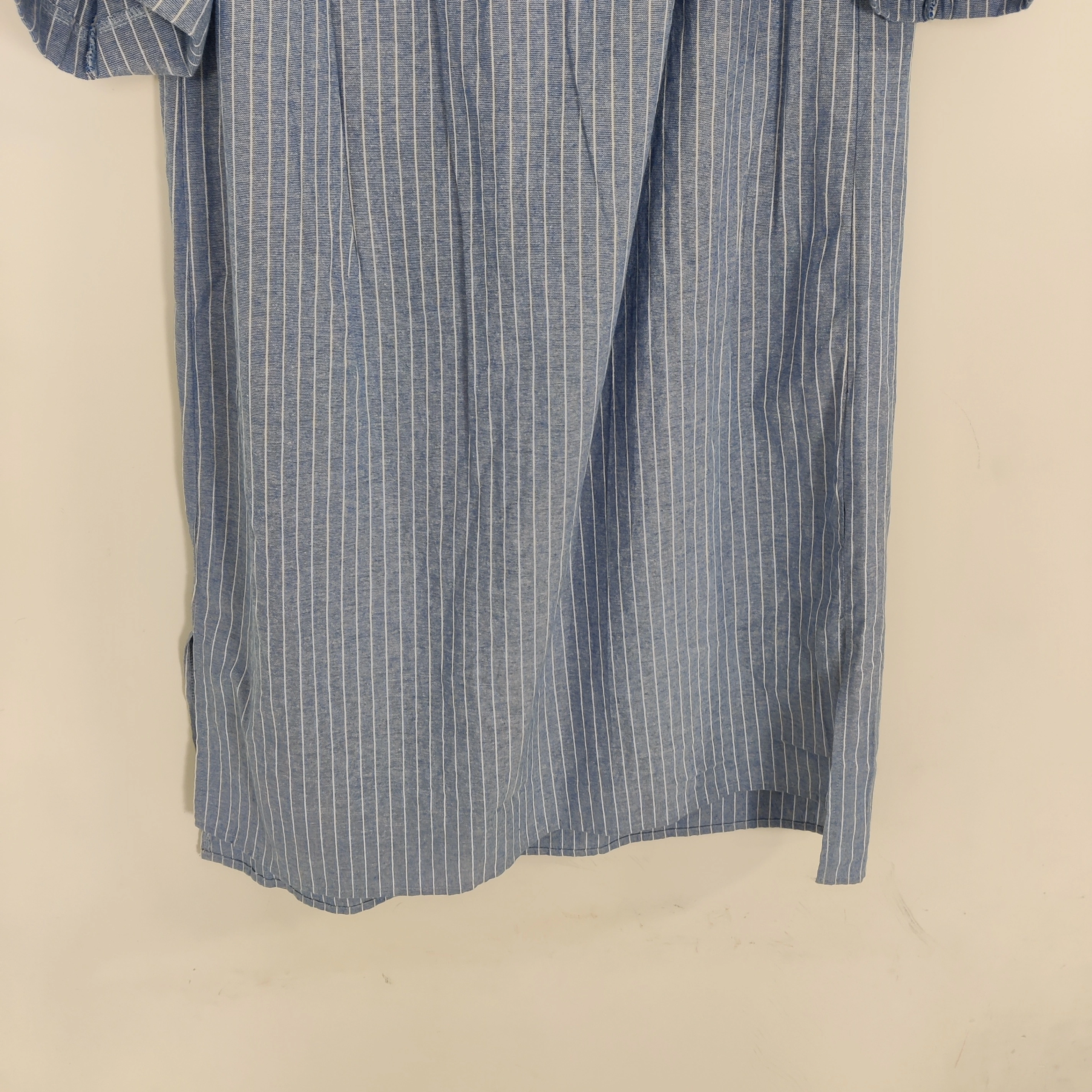 10Elegant and effortlessly stylish, this V&L Made in Italy blue and white striped tunic dress features charming red smocked embroidery on the shoulders. Crafted from a breathable 76% cotton and 24% polyester blend, it offers a relaxed fit with short sleeves and a flattering V-neckline. Perfect for spring and summer days, this versatile dress pairs beautifully with sandals or sneakers for a casual yet refined look. Size Large. In good used condition Measurements are approximate and taken laying flat Follow me on Instagram @renewifyupcycle for unique upcycled items V&L dress, Made in Italy, blue striped dress, embroidered shoulders, smocked detail, cotton blend dress, tunic dress, boho chic, summer fashion, relaxed fit, short sleeve dress, Italian clothing, casual women’s wear, lightweight dress