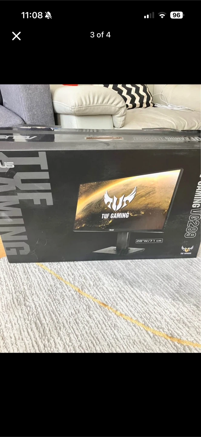 This is an ASUS TUF Gaming VG289Q monitor, featuring a 28-inch 4K display. It comes with its original box and packaging. The monitor is great for gaming and general use!