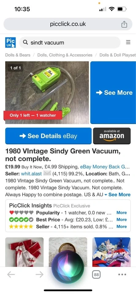 Buy & SellVintage Sunday Vacuum CleaberVintage Sunday Vacuum Cleaber$5This toy vacuum is part of the Sunday collection for her house. It can also be used for Barbie dolls.WHERE TO MEETCheck LocationView MapSELLERverifiedLindaWhitevale650 reviews0 chats·0 favorites·1 viewsSEND CHAT TO SELLERHi Linda! I’m interested in your listing.Hi Linda! I’m interested in your listing.Get the Karrot app to chatSign In to chat