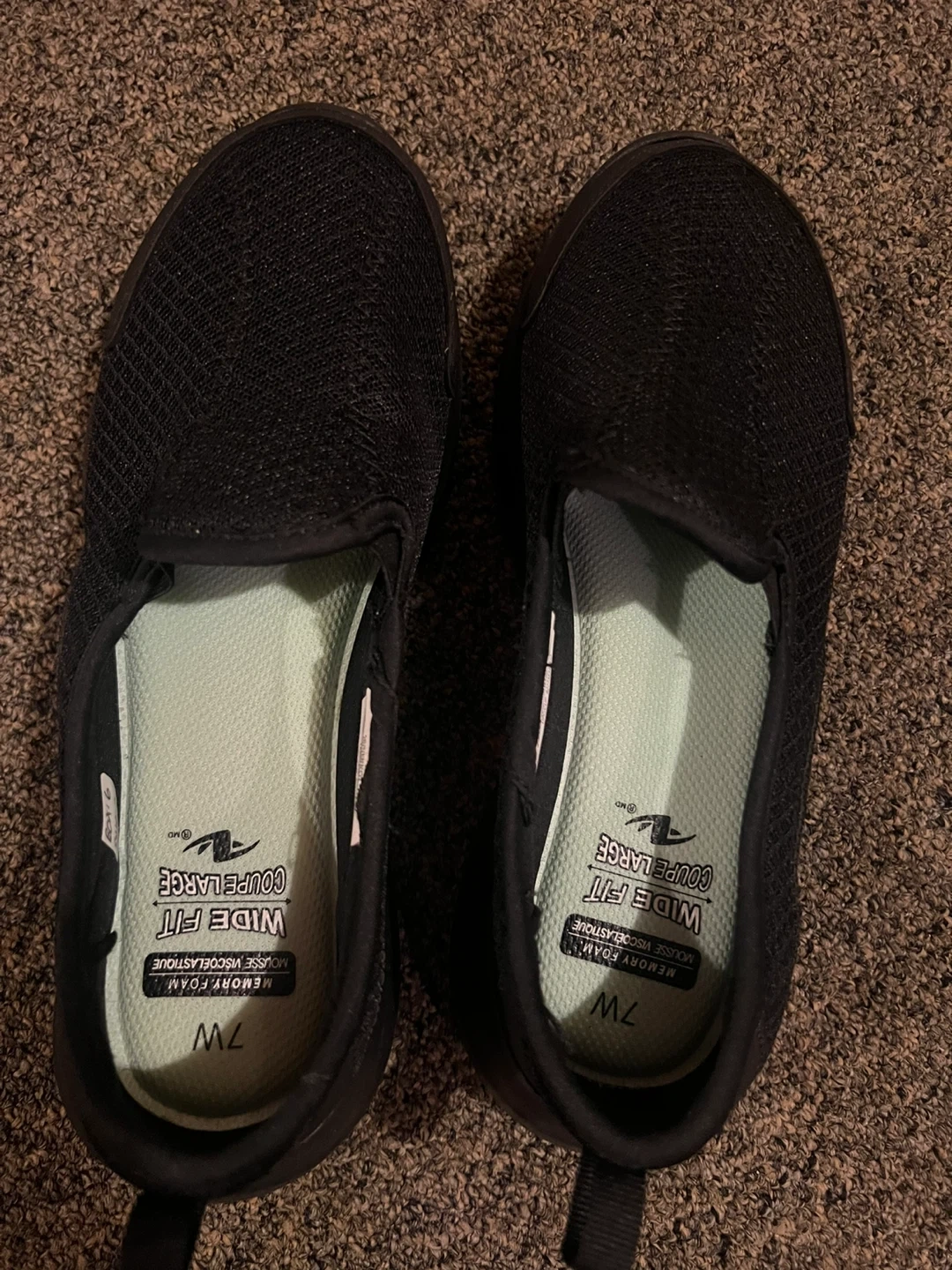 Athletic Works Black Wide Fit Slip-On Shoes - Size 7W