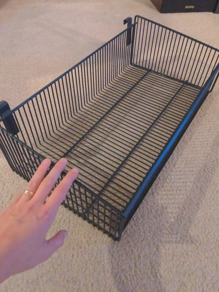 Buy & SellWire Storage BasketWire Storage Basket$5This is a wire storage basket. It's made of metal and has a dark finish. The basket includes hooks for hanging.ConditionLike newWHERE TO MEETCapital HillView MapSELLERSvetaHoldom-Burnaby North11610 reviews0 chats·1 favorites·9 viewsSEND CHAT TO SELLERHi Sveta! I’m interested in your listing.Hi Sveta! I’m interested in your listing.Get the Karrot app to chatSign In to chat