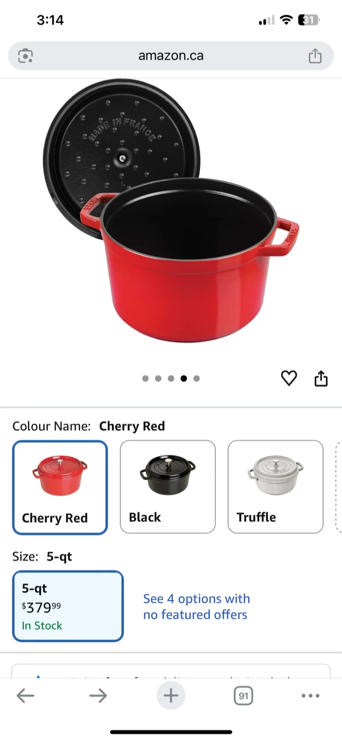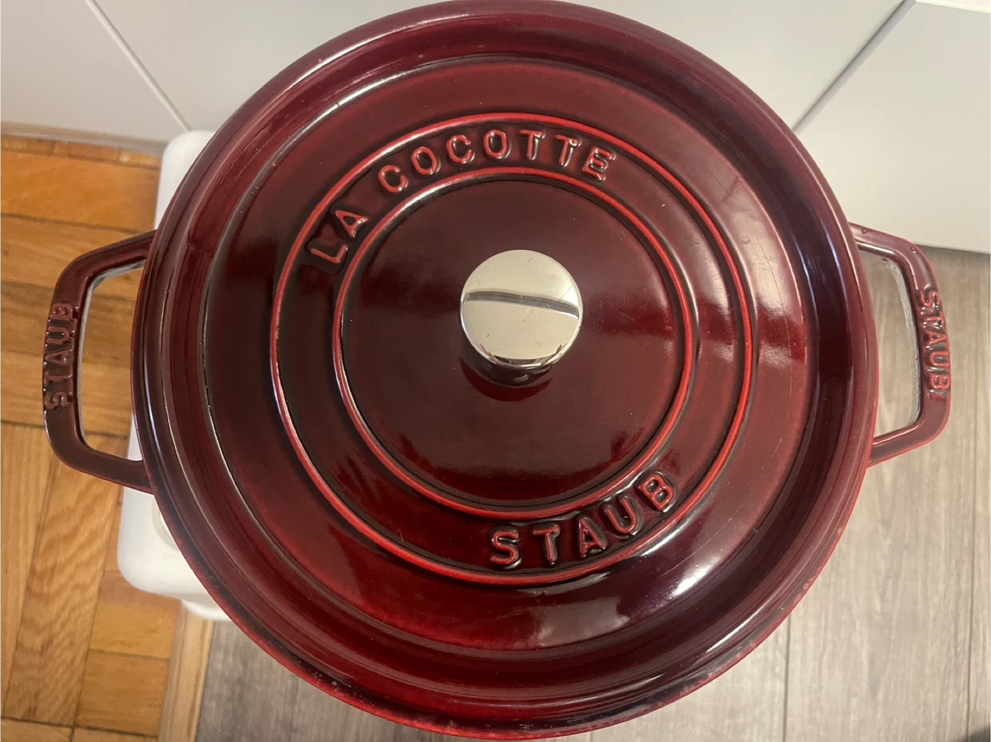Buy & SellStaub La Cocotte 26 Made in FranceStaub La Cocotte 26 Made in France$210Selling a Staub La Cocotte, made in France. It's a beautiful burgundy colour and is size 26. The lid says 10 1/4".ÉtatGoodWHERE TO MEETCheck LocationView MapSELLERverifiedTetianaStonegate40242 reviews0 chats·1 favorites·32 viewsSEND CHAT TO SELLERHi Tetiana! I’m interested in your listing.Hi Tetiana! I’m interested in your listing.Get the Karrot app to chatSign In to chat