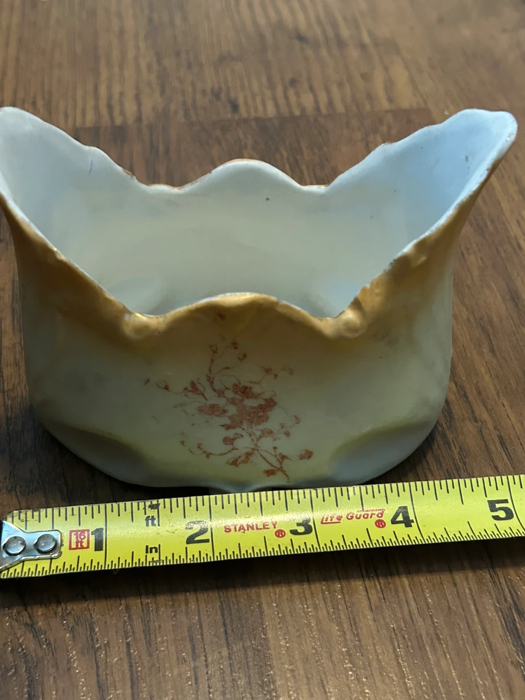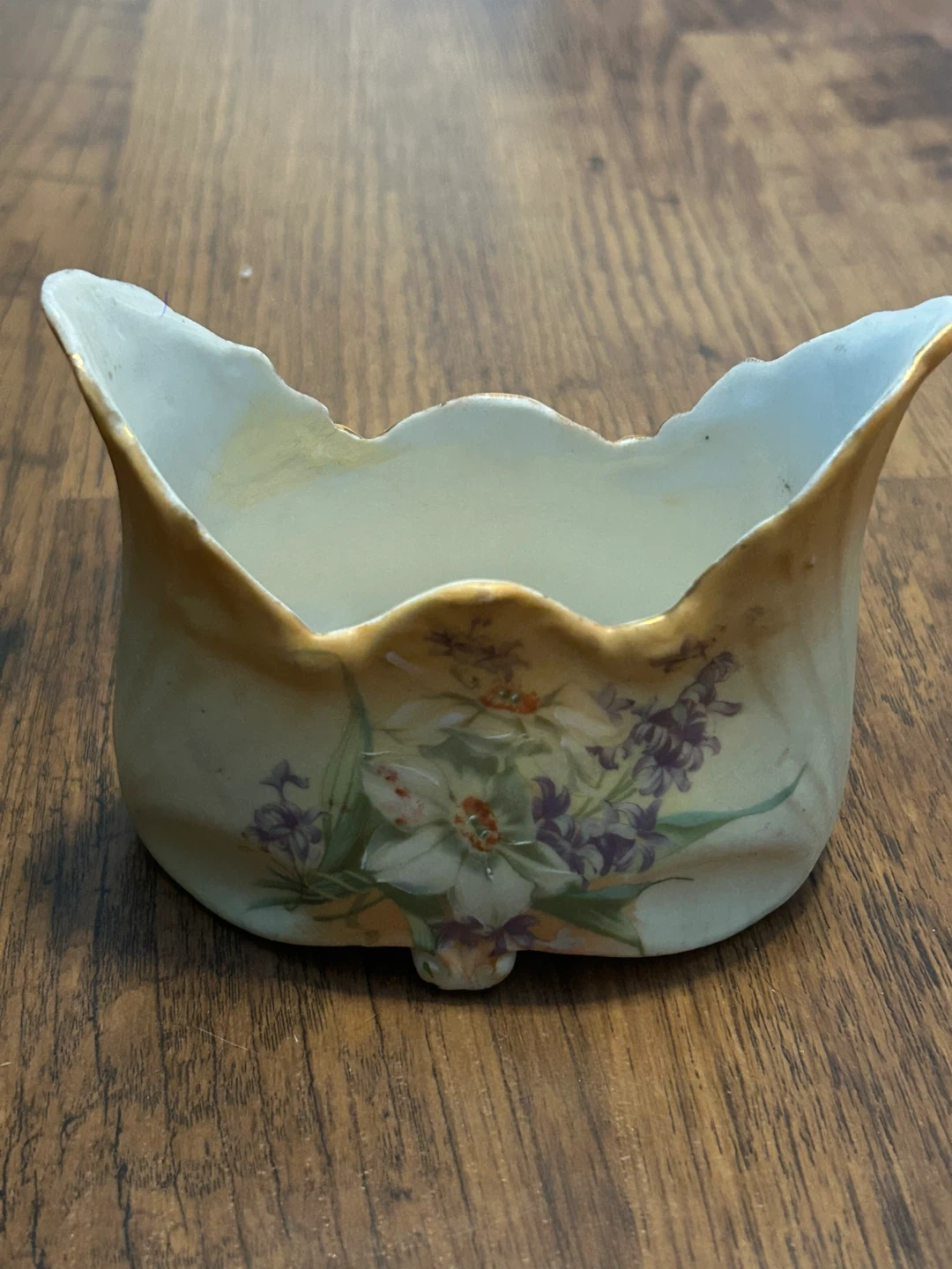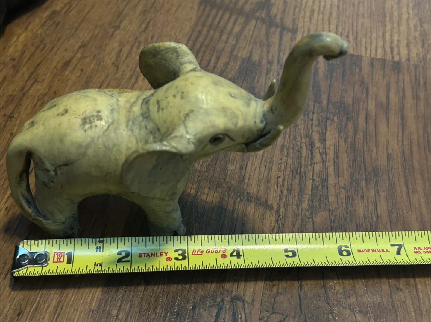 Here are two vintage items: a floral bowl and an elephant figurine! They would make a nice addition to any collection. The bowl has a delicate floral pattern, and the elephant figurine has a unique, textured finish