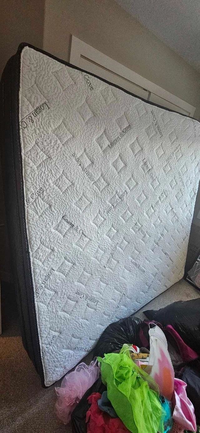 Structube king bed and a Logan & Cove mattress. Paid $2400. Selling because we bought a split mattress and a adjustable base. Non smoking pet free home. Bed will be dissembled, all hardware included. Yes its still available. No I wont hold it. No I wont deliver it. No I wont help load it. Price is firm. Cash only. Located just off Wye Road.