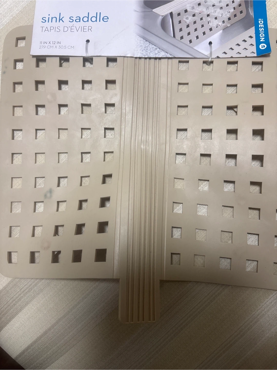 Protects your sink from scratches and scuffs. It's made of durable plastic and measures 11 IN X 12 IN. Comes with suction cups to stay in place. Great for any kitchen sink!