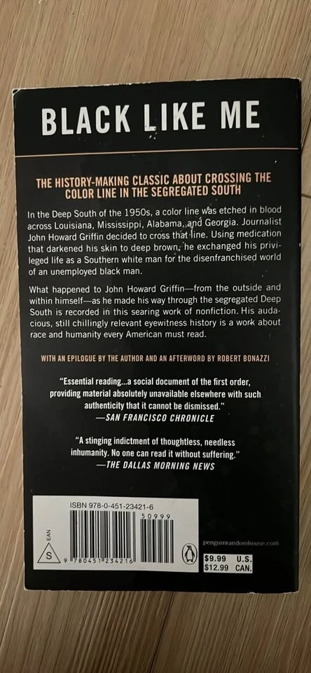 Buy & SellBlack Like Me by John Howard GriffinBlack Like Me by John Howard Griffin$13Great book interesting perspective.WHERE TO MEETCheck LocationView MapSELLERverifiedLinTemple650 reviews0 chats·0 favorites·0 viewsSEND CHAT TO SELLERHi Lin! I’m interested in your listing.Hi Lin! I’m interested in your listing.Get the Karrot app to chatSign In to chat