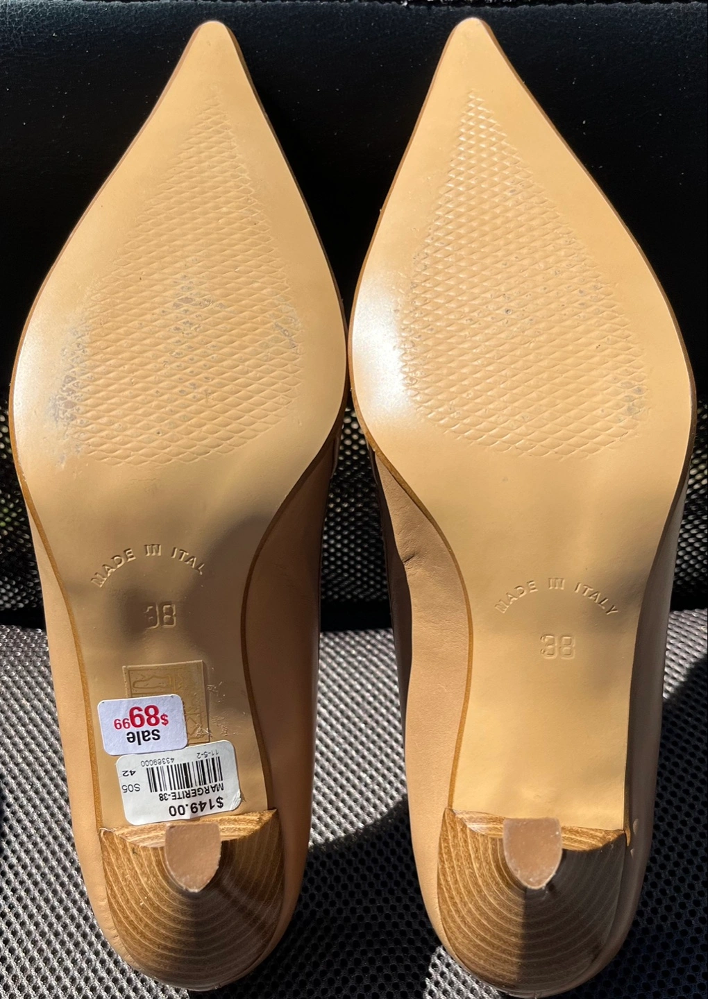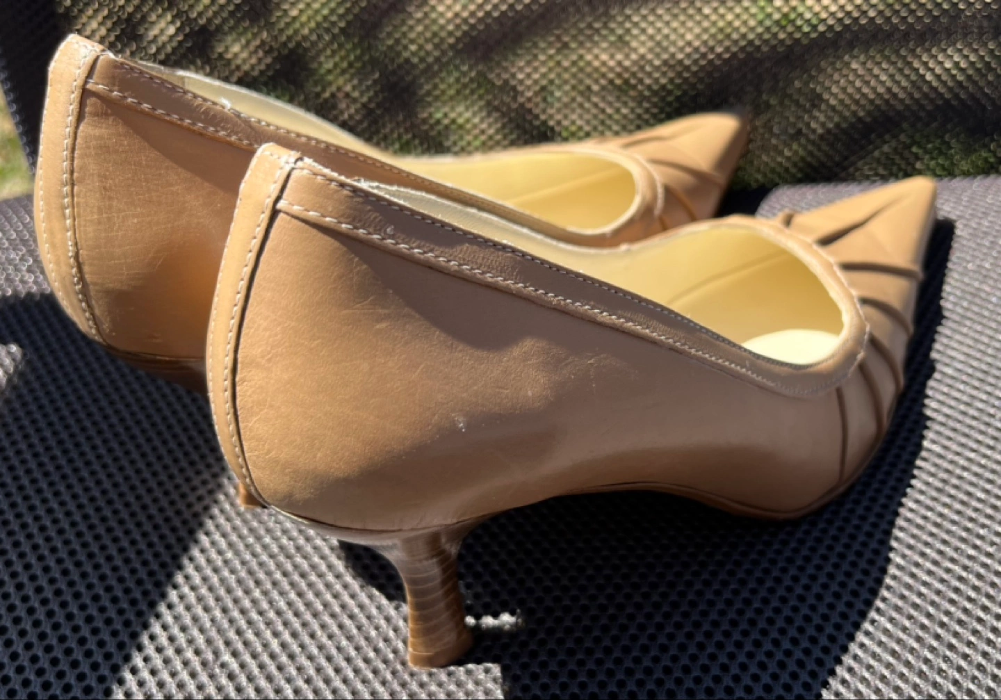 My wife had to go to an indoor business meeting and she needed heels in a pinch to go with her business suit at the time. She picked these up tout suite and after the meeting she forgot about them after coming home and they’ve been in storage ever since.
