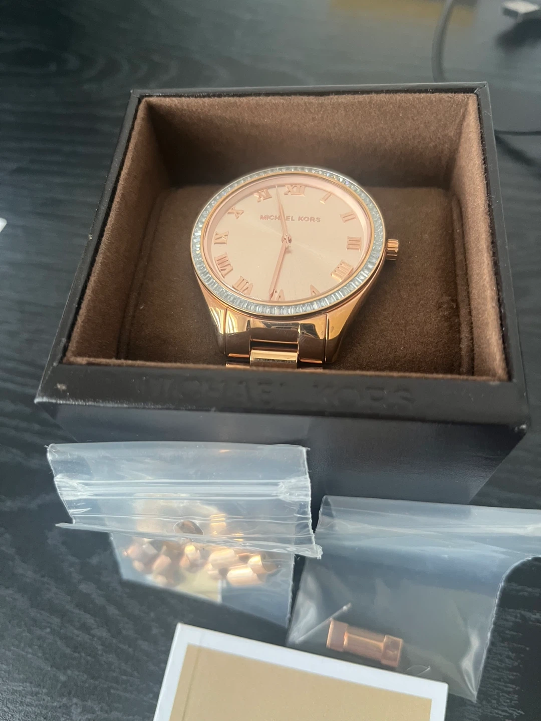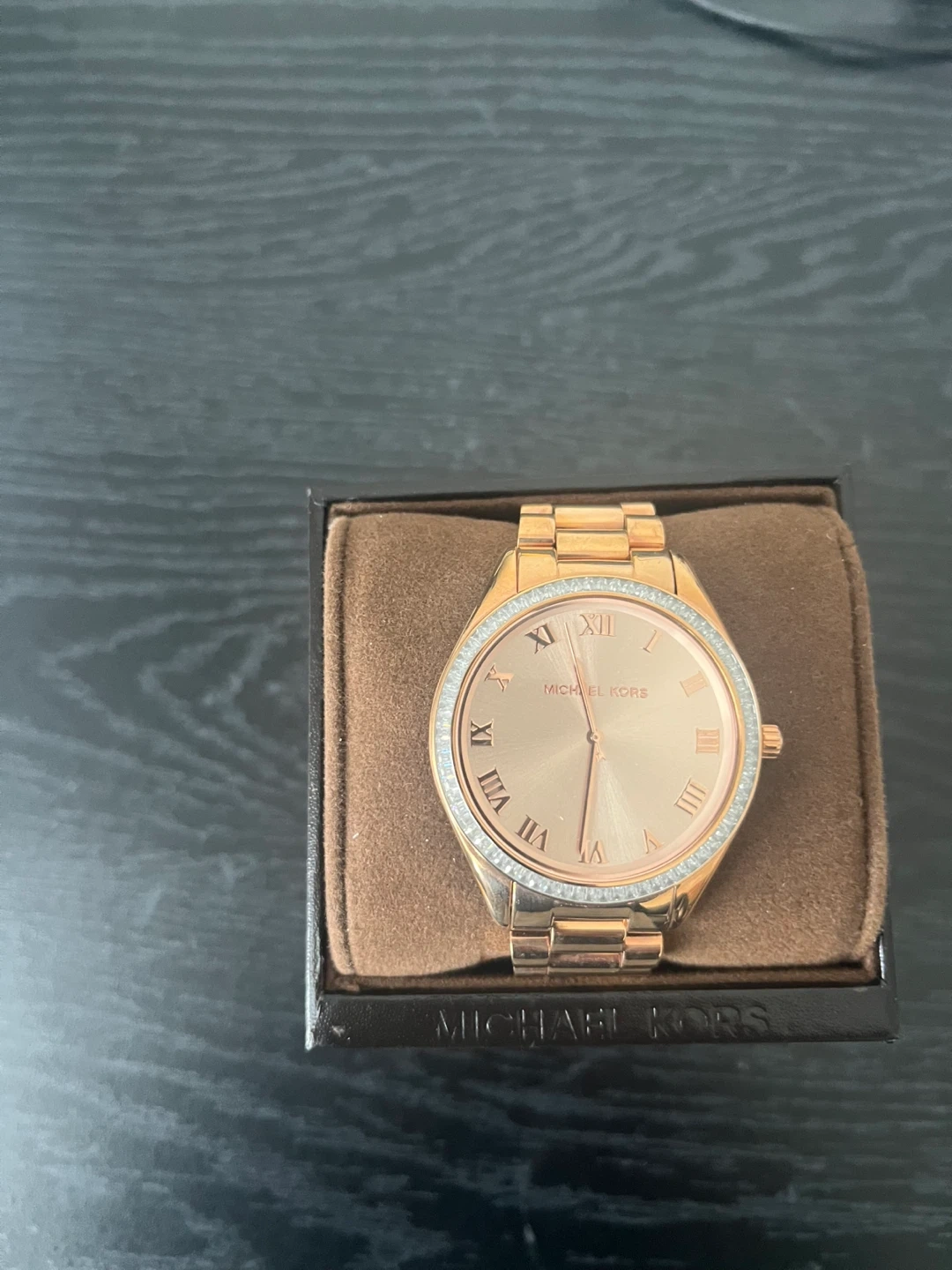 Selling a beautiful Michael Kors rose gold watch. It comes with its original box and extra links to adjust the size. Needs a new battery. It's in great condition and ready for a new owner!
