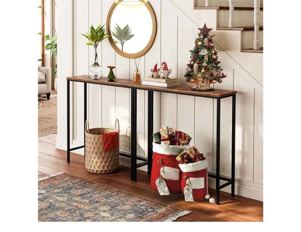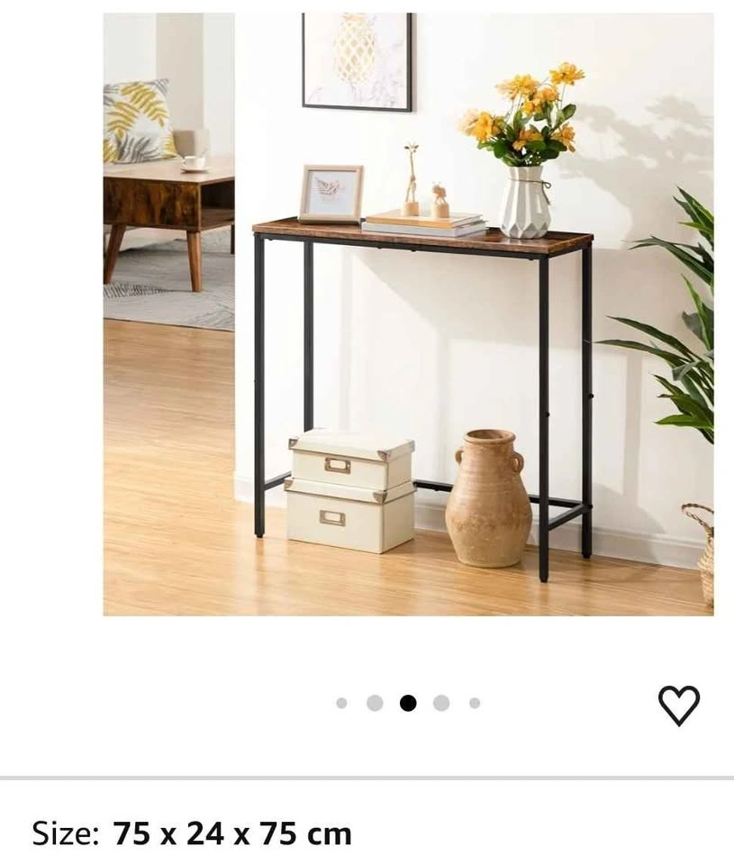 HOOBRO Narrow Console Table, 75 cm Entryway Table, Small Sofa Side Table, Display Table, for Hallway, Bedroom, Living Room, Foyer, Rustic Brown and Black BF75XG01. It's assembled and easy to carry. Pick up at Markham and Ellesmere.