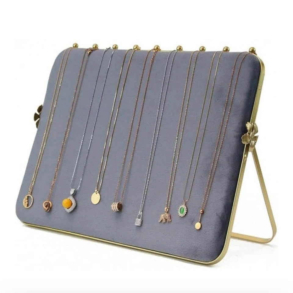 One two-sided velvet necklace display stand. Never used. Has been in storage.